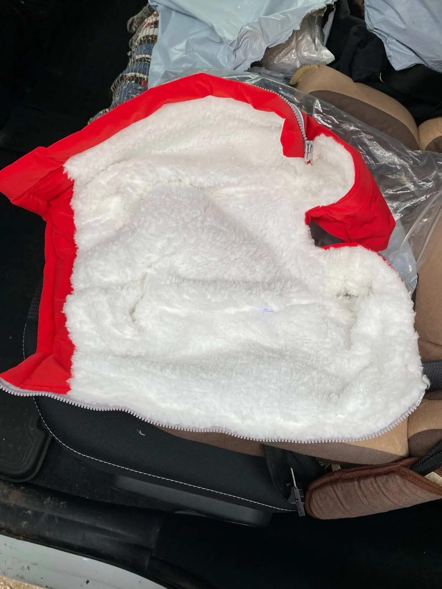Щенок 7.7 кг размер подошёл идеально. Сшит отлично, мех внутри.