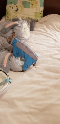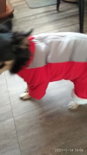 Комбинезон качественный, сшит аккуратно. Брала на собаку 1,6кг Обычно подходит самый маленький размер. Собака без проблем носит любую одежду и обувь. Но в этом комбинезоне не сделала и шагу. Воротник длинный, в груди велико. Видно, что неудобно. Для нас оказалась несуразная выкройка. Хотя с другой одеждой с этими же размером проблем нет.