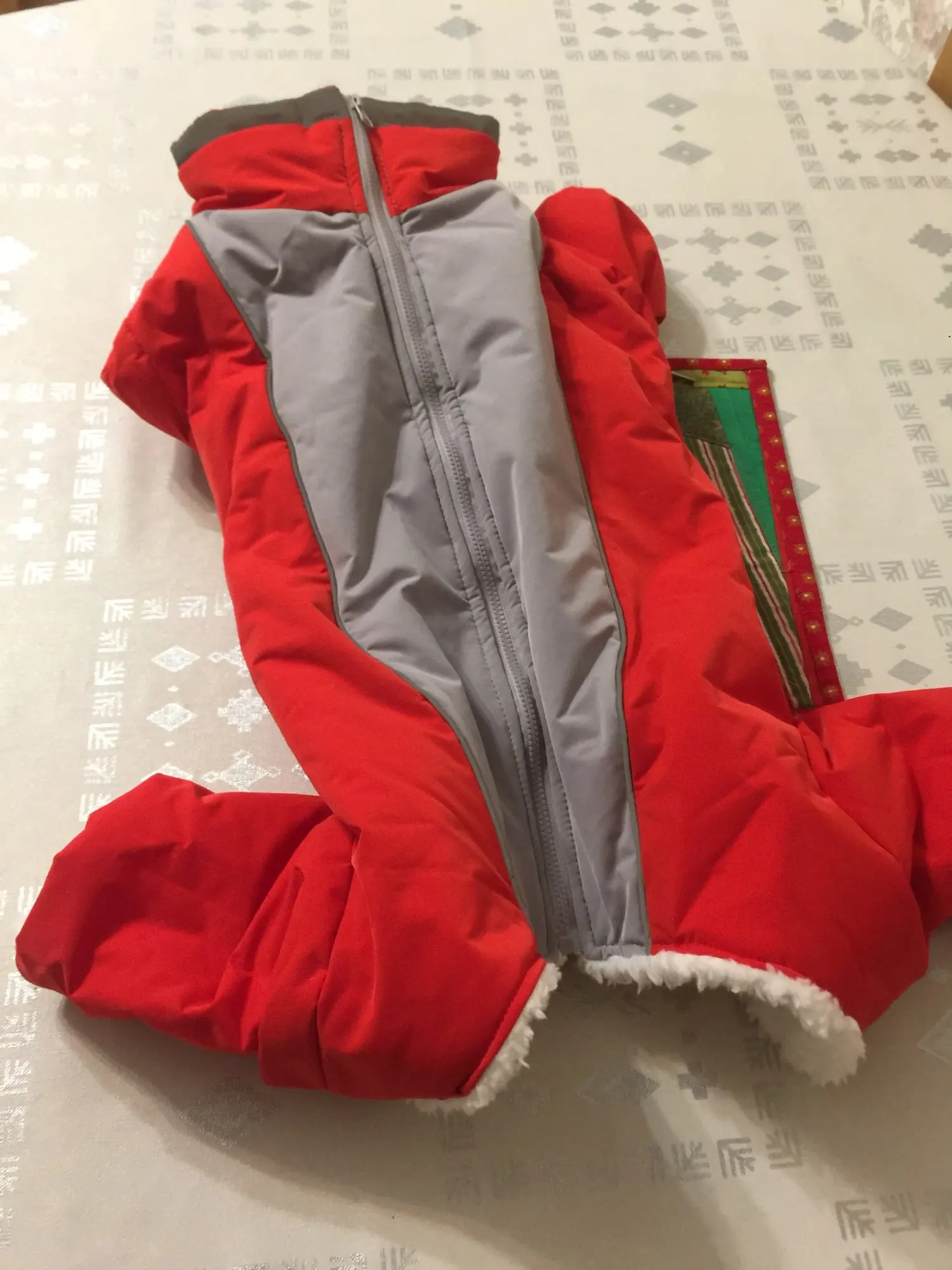 Комбинезон сшит качественно. Швы ровные. Единственный минус нет петельки для поводка. Но это не критично. Продавца рекомендую. Доставка, с учётом новогодних праздников, 2 недели до Московской области.