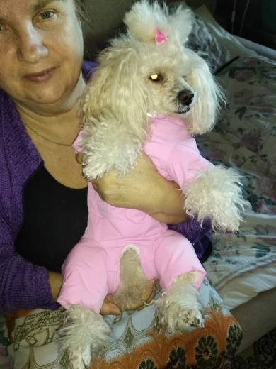 Комбезик классный, на девочку цвергпинчера 3.2 кг сел хорошо, даже немного великоват. Все прорези удобные. Спасибо продавцу!