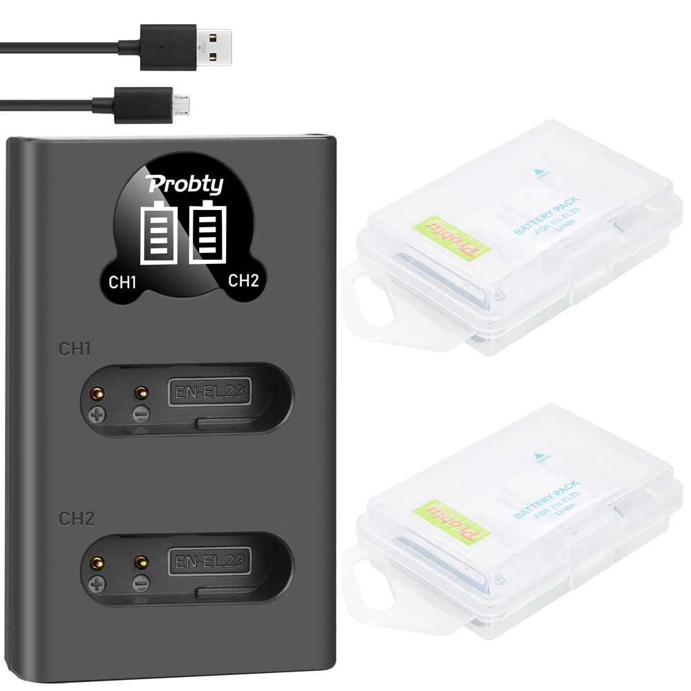 2 шт. 1850 мАч для Nikon EN EL23 фотоаккумулятор + двойное зарядное устройство для совместимости с Nikon Coolpix P600 P610 B700 P900 S810c