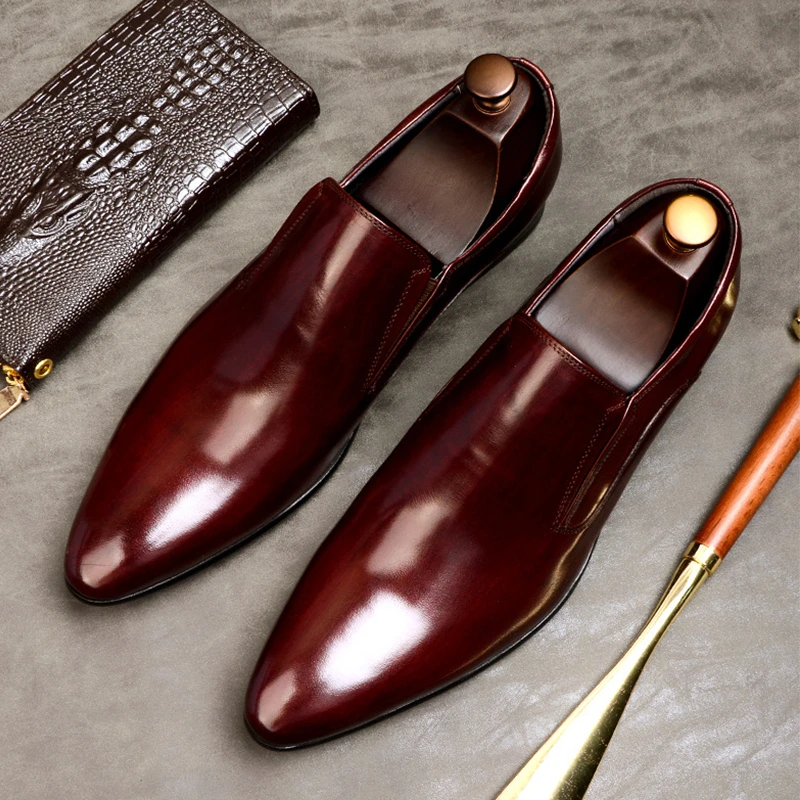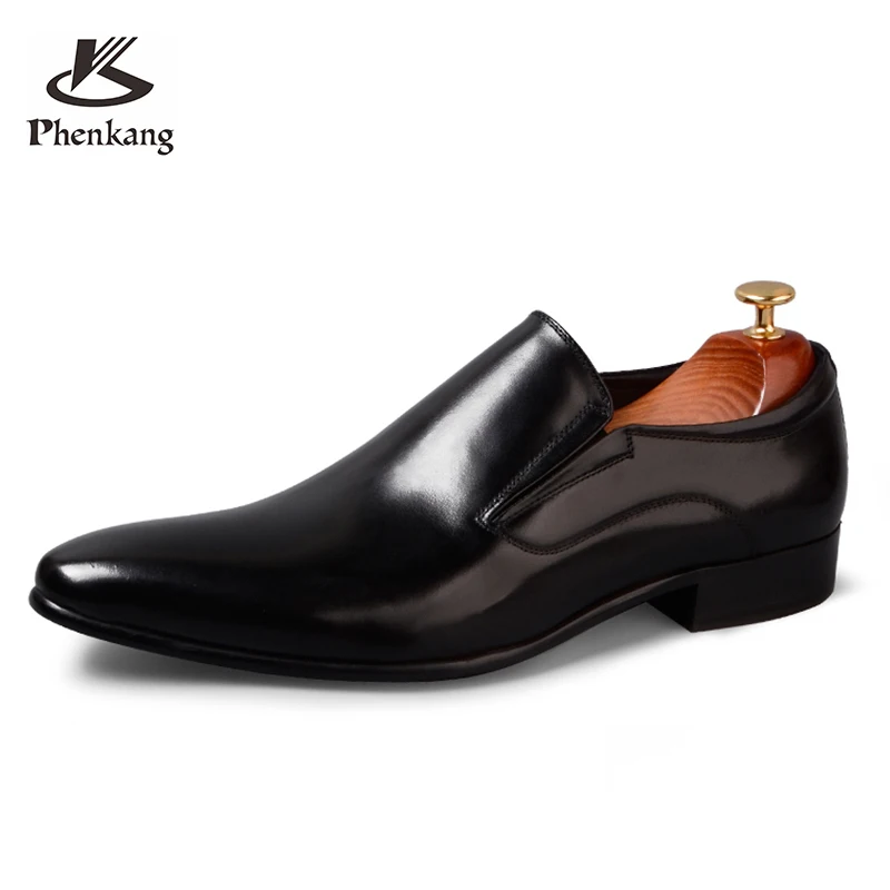 Мужские классические туфли Phenkang из натуральной кожи, деловой костюм для вечеринки, свадьбы, брендовые броги, оксфорды с острым носком для мужчин 2022