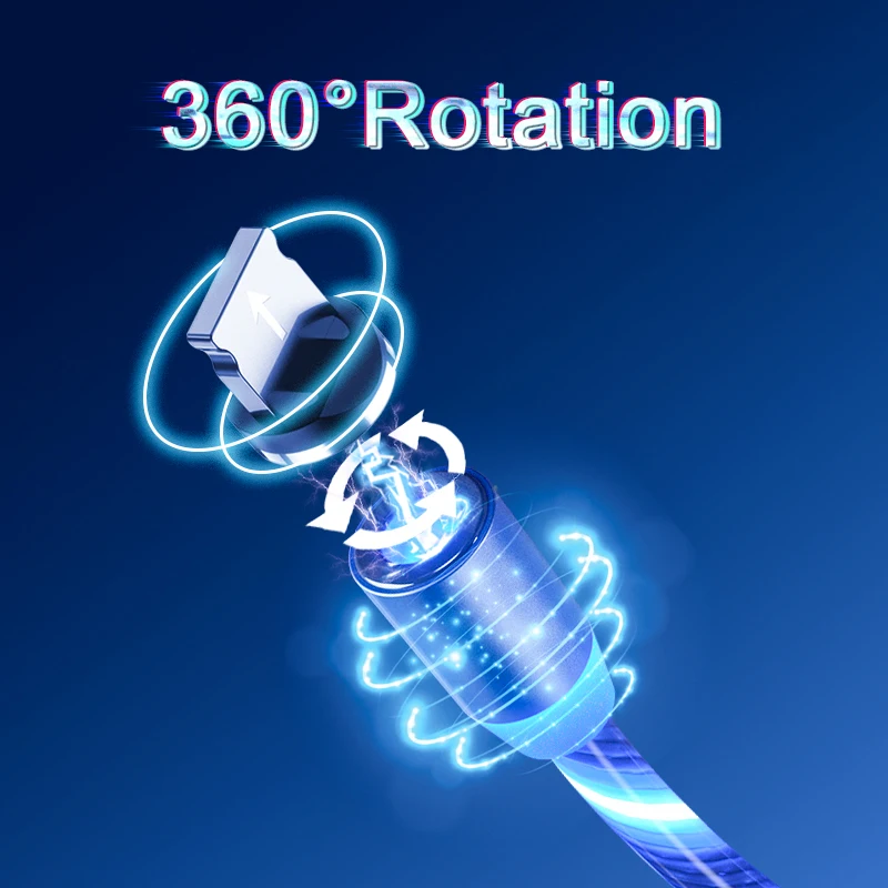 Магнитный кабель Micro USB Type-C со светодиодной подсветкой, заряд...