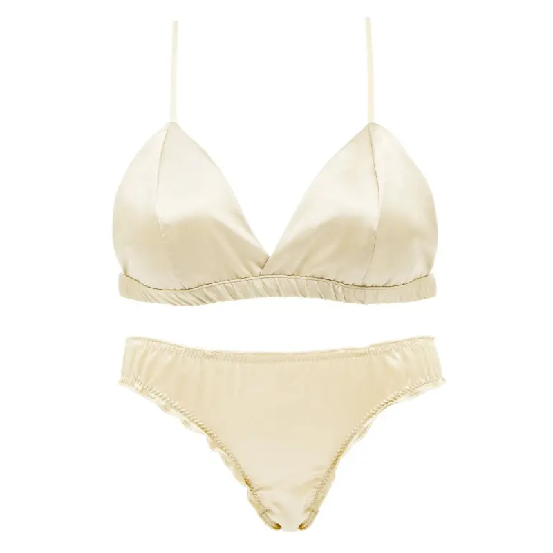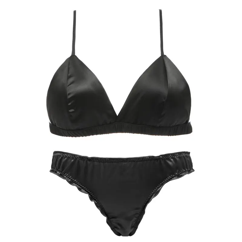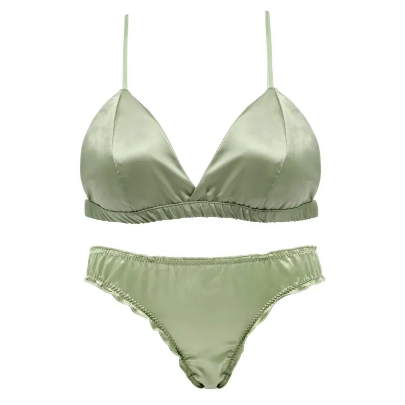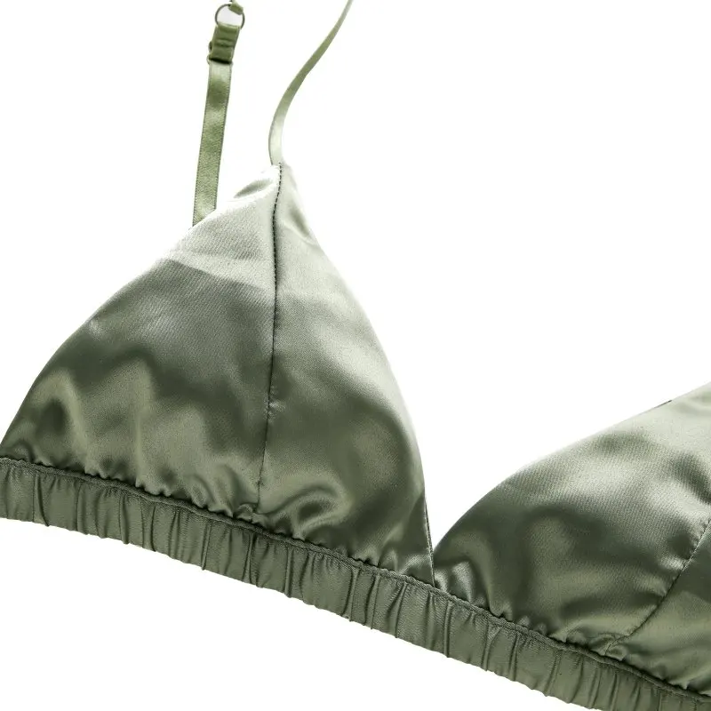 Комплект женского атласного нижнего белья с бюстгальтером без косточек, с тонкими треугольными чашками, однотонный бюстгальтер и трусики