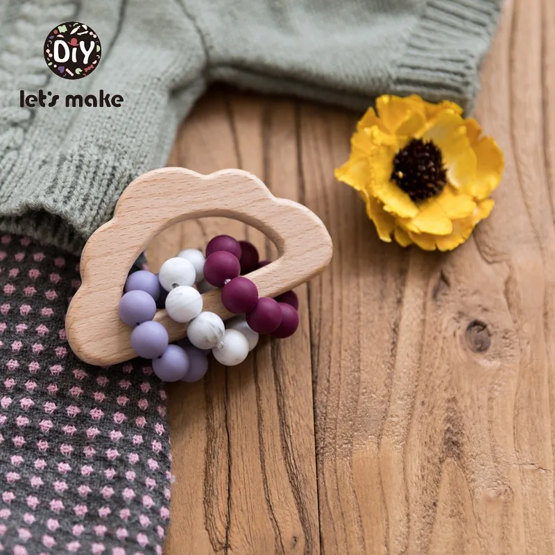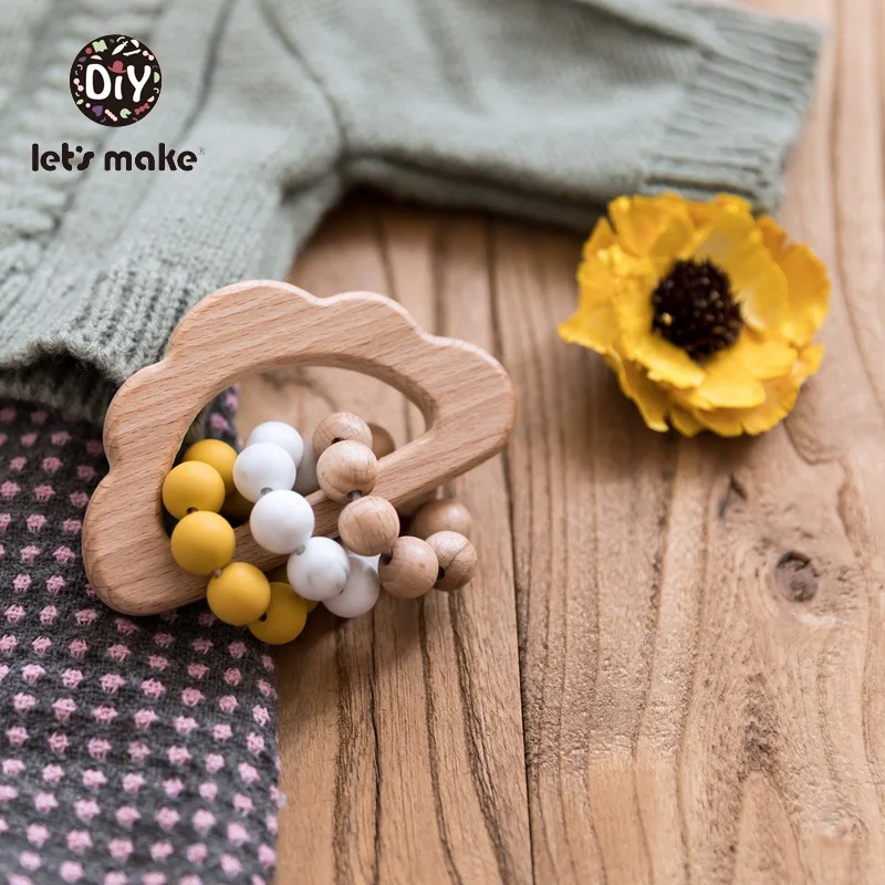 Детские игрушки Let's Make, подвесные деревянные силиконовые бусины, бисероплетение, Обучающие игрушки, погремушки для кровати 0-12 месяцев, 1 шт., без БФА, деревянные погремушки