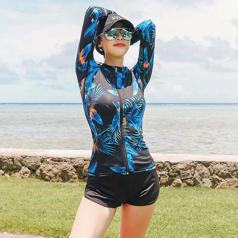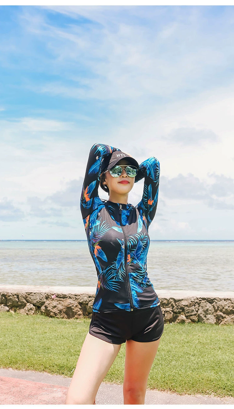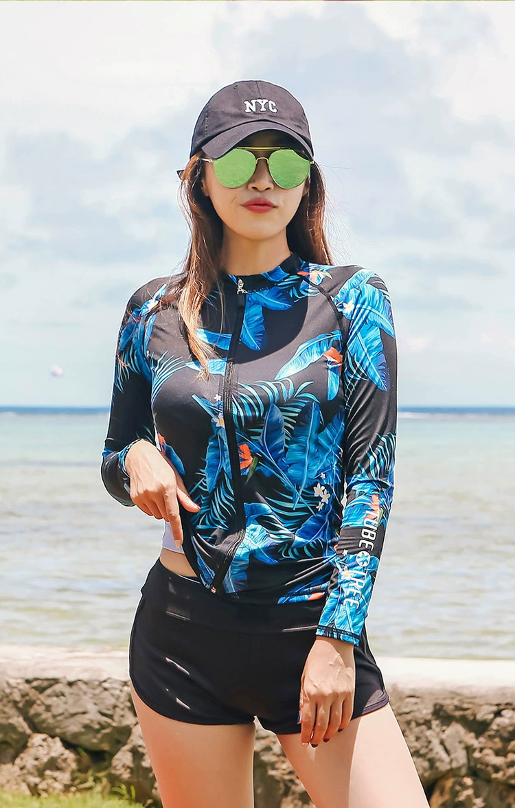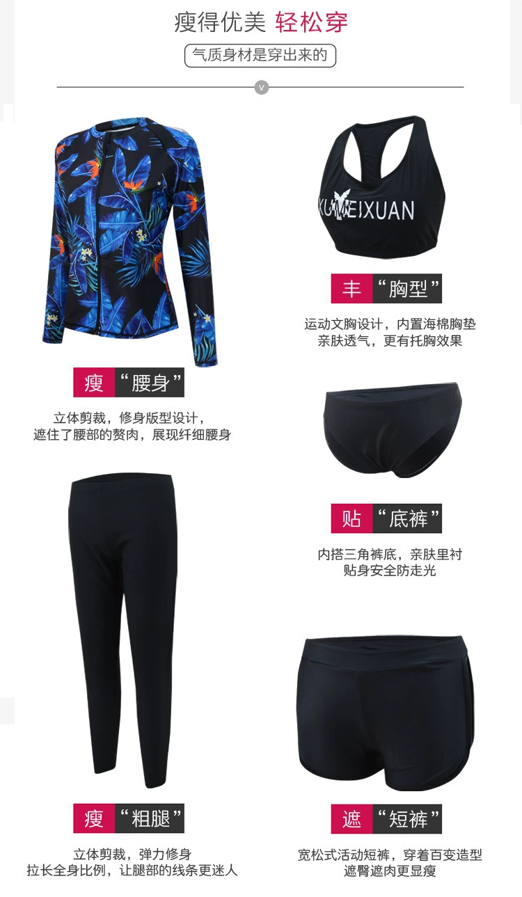 Женский комплект из 5 предметов, топ с защитой от ультрафиолета, топ на молнии и низ для плавания