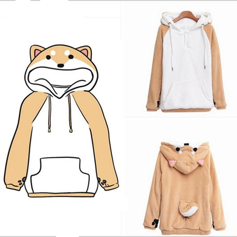 Собака Толстовки для влюбленных пальто собака толстовки Doge с ушками и хвостом, Толстовка Косплей Shiba Толстовка
