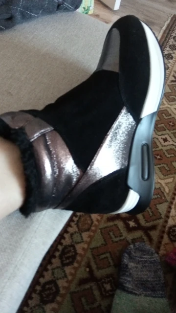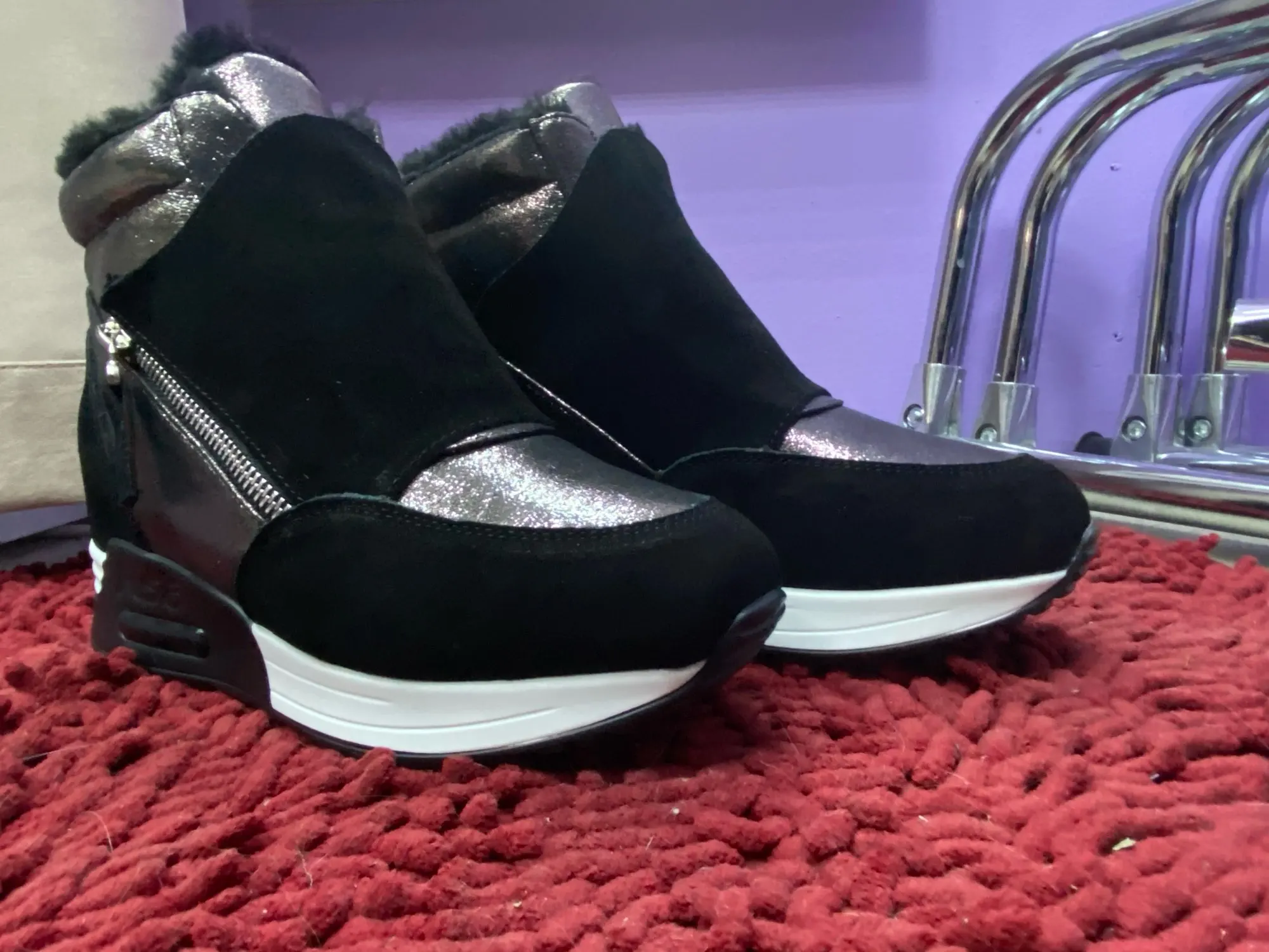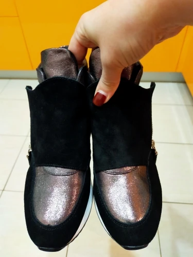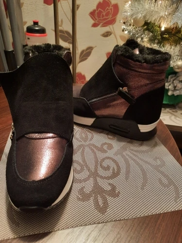 Классные ! Легкие и удобные , попросила поменять зимние на осень и очень довольна , на зиму надо на натуральном меху , чёрные вставки натуральная замша , блестящие ткань серебристо- розоватого цвета , на стопу 23.8 как раз!