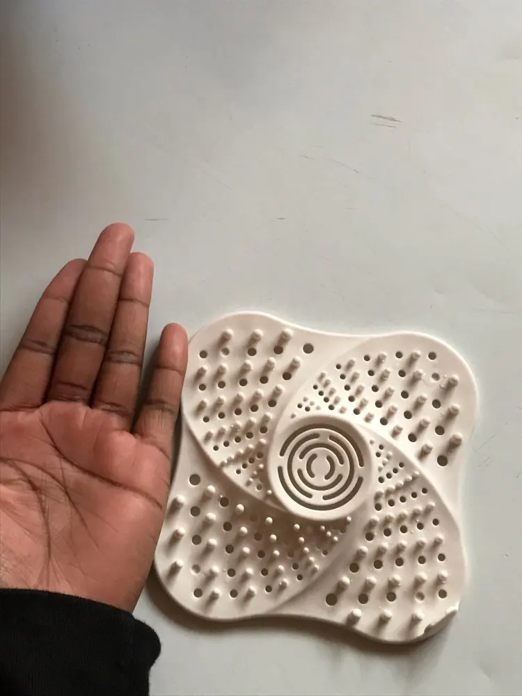 Сетка точно соответствует описанию. Когда я сливаю ванну, я кладу решетку над сливным отверстием, и она ловит весь бардак.