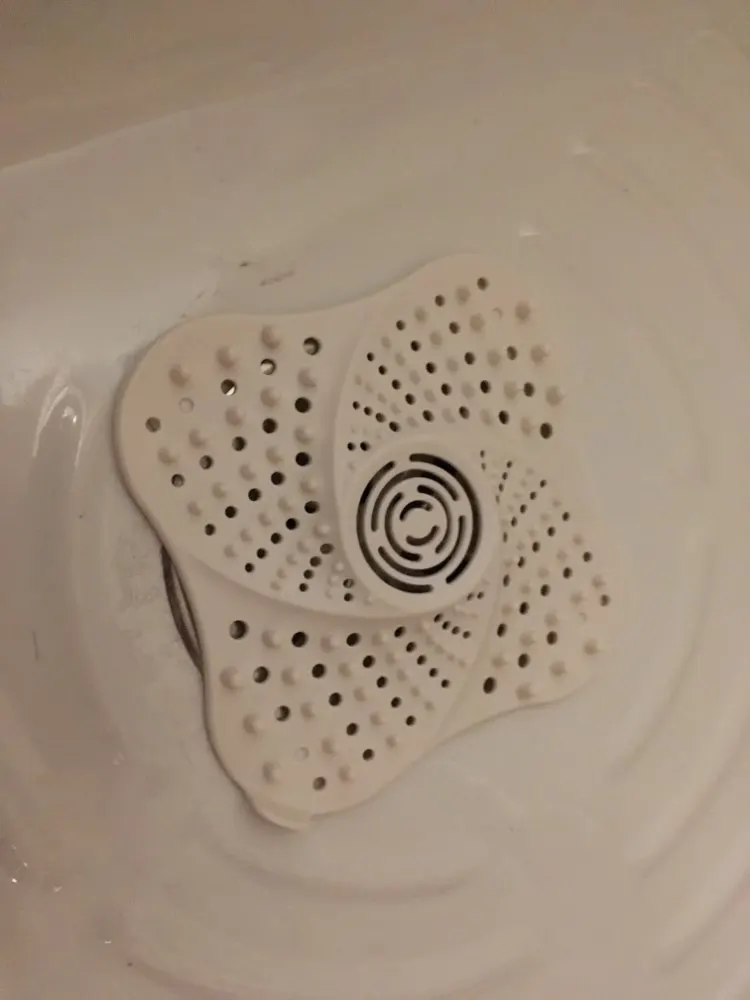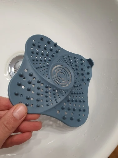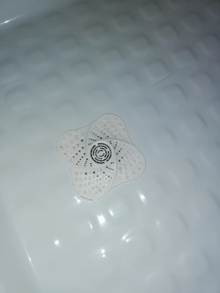 Encaja perfectamente con el desagüe de mi bañera, y funciona evitando que se cuelen los pelos y se atasque. Se pega fácil con las ventosas.
