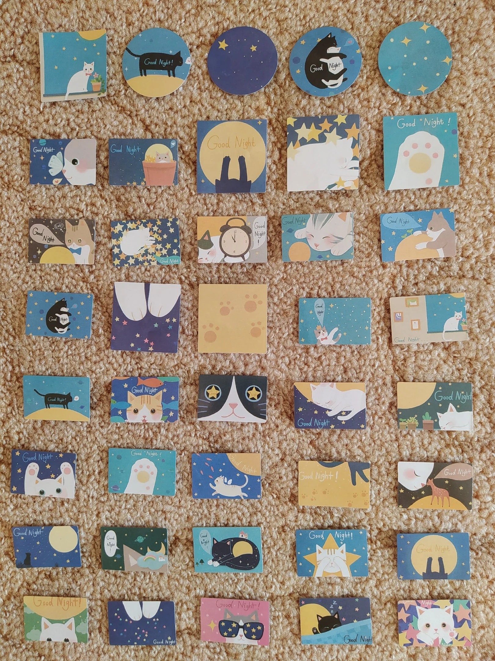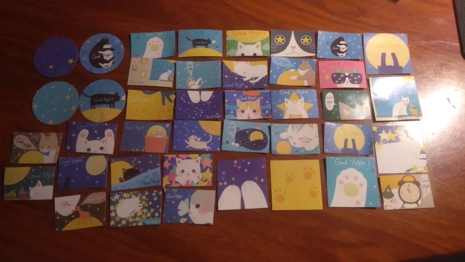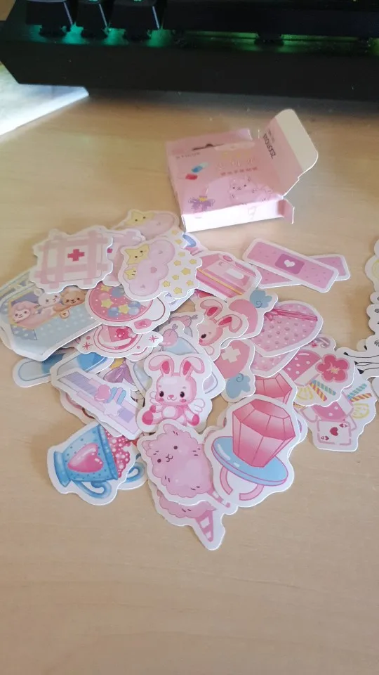 Стикеры хорошего качества, очень милые В упаковочке 44 шт. Каждого вида по 2 шт. Упаковка не повреждена, как и сами стикеры, но несколько, всё же, немного помялись. Это не заметно :) Продавец отправил их на следующий день после оплаты. Пришли они в течении 3х недель. Спасибо продавцу✨