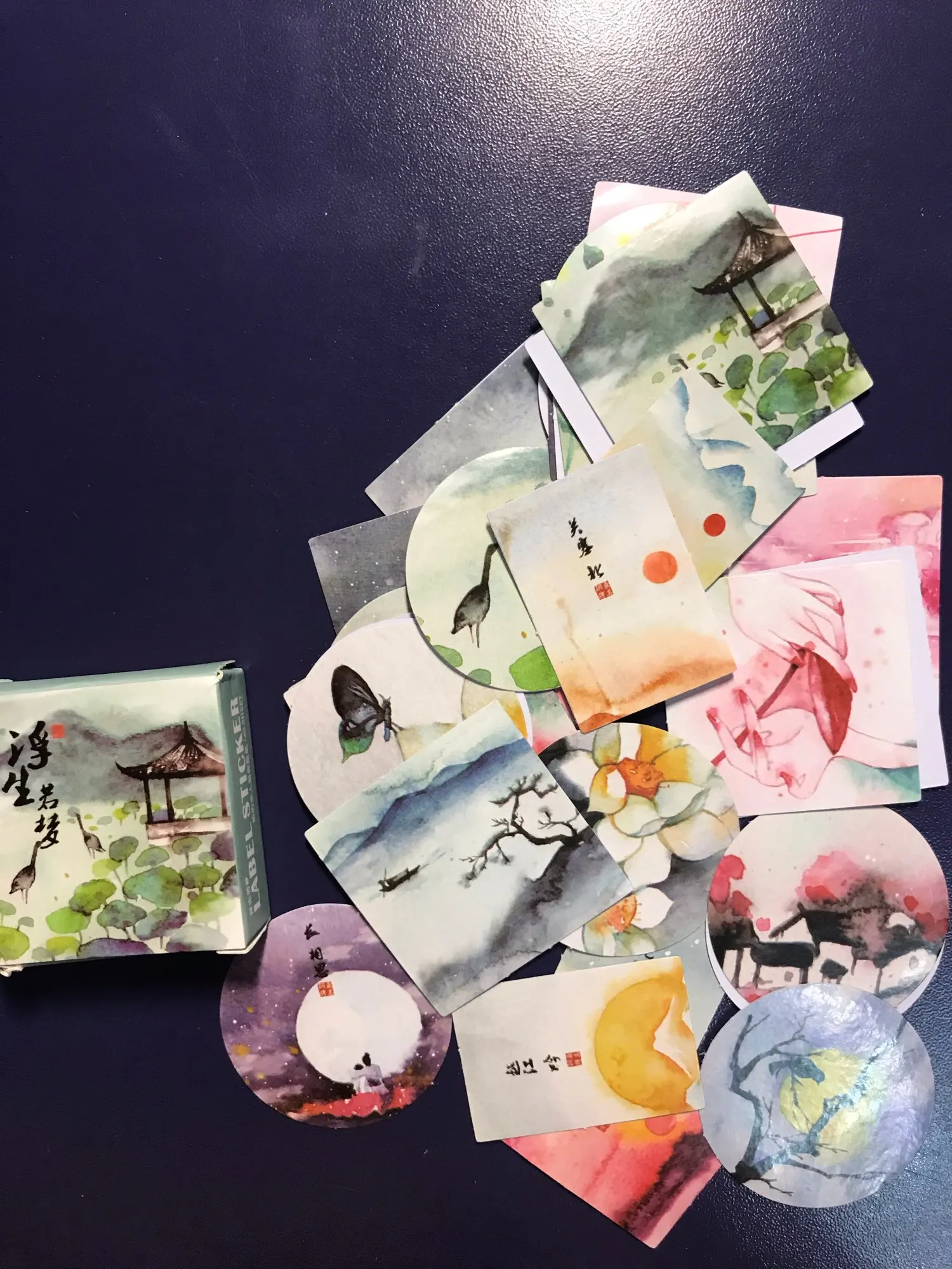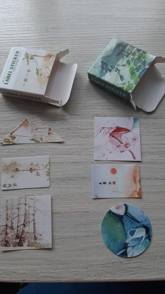 Очень красивые, атмосферные наклейки. Я просто поражаюсь их красоте. Если честно, то думала они будут немного больше, но, такие даже лучше, их можно лепить в дневник, ежедневник, тетрадь. Качество супер, как мини-картины, даже жаль использовать, всем советую, не пожалеете!