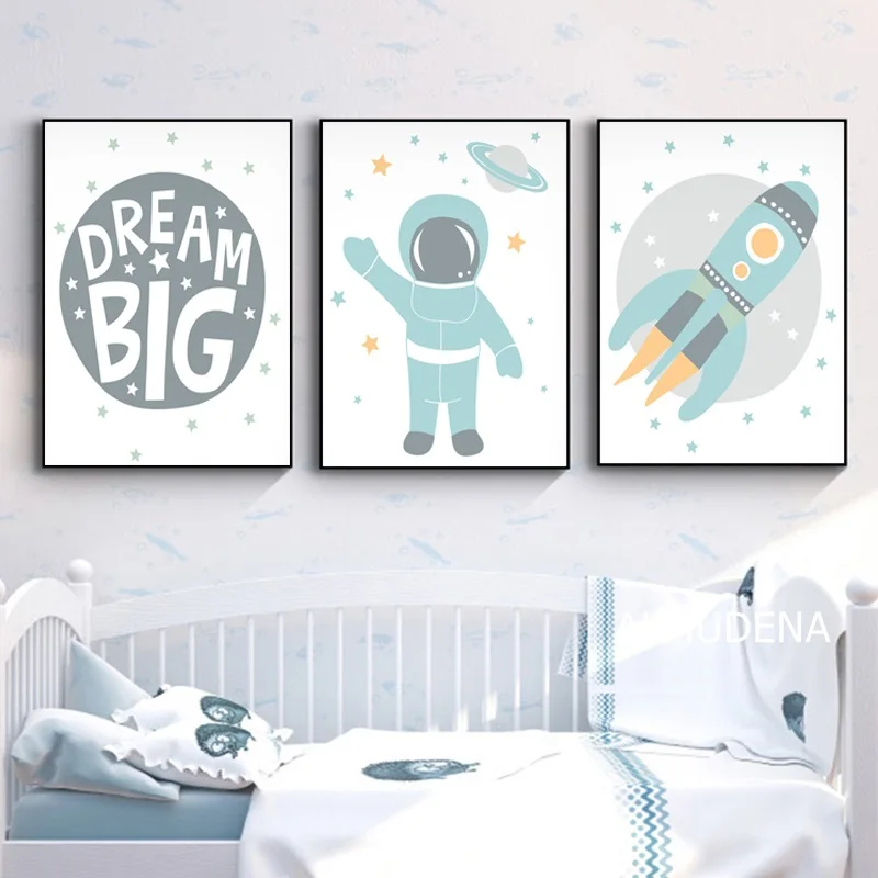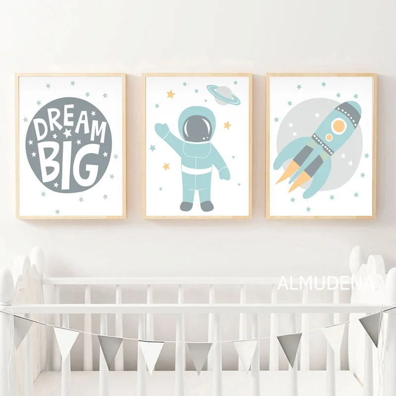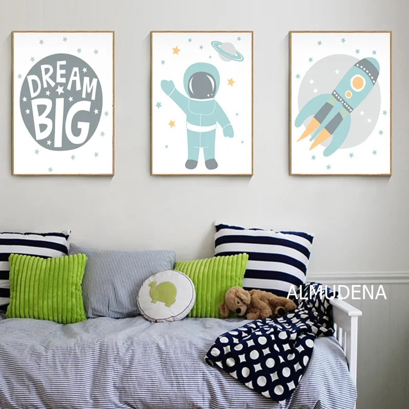 Детский Настенный художественный холст, картина космонавта, космическая ракета, принт мечты, большой плакат в скандинавском стиле, украшение для спальни для мальчиков