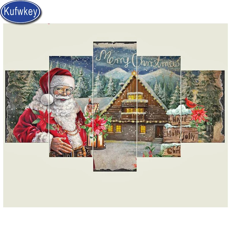 5 шт., алмазная картина, полный квадрат, рождественский дом, смоляная дрель, 5d Daimond набор, стразы, картина, вышивка, мозаика, Санта-Клаус