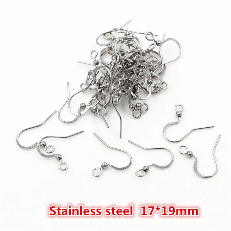 (Никогда не выцветает) 100 шт.лот 19x17 мм из нержавеющей стали, фурнитура для сережек, застежки, крючки, аксессуары для изготовления ювелирных изделий, W3-39