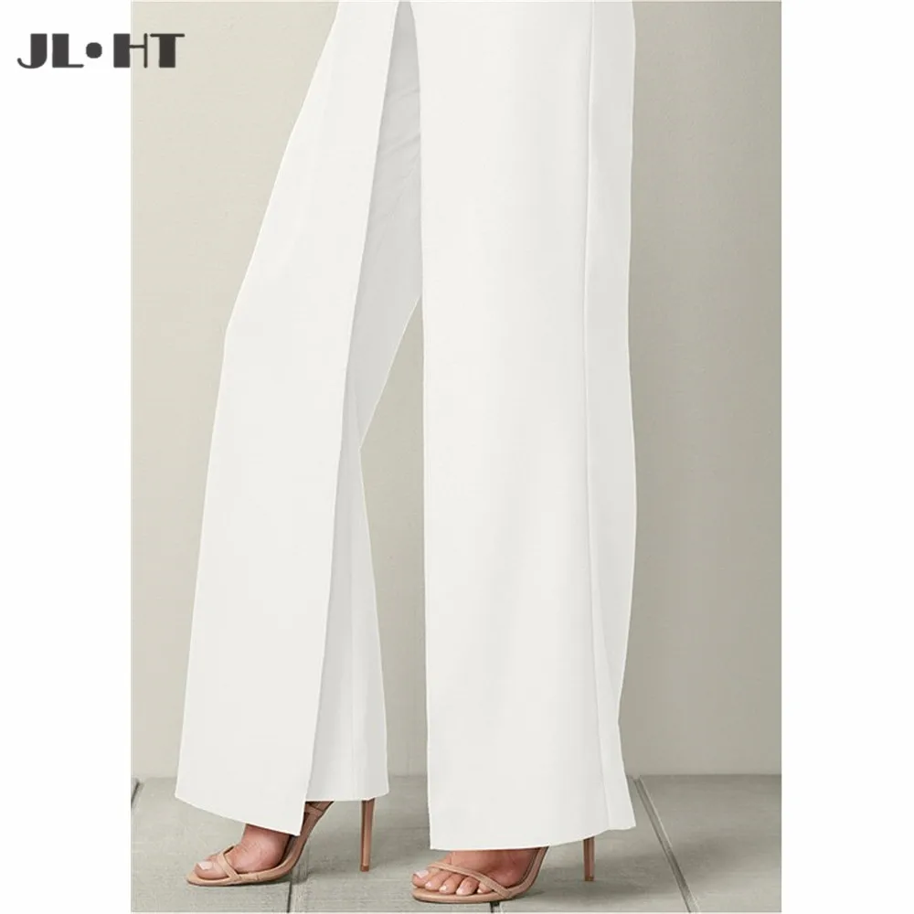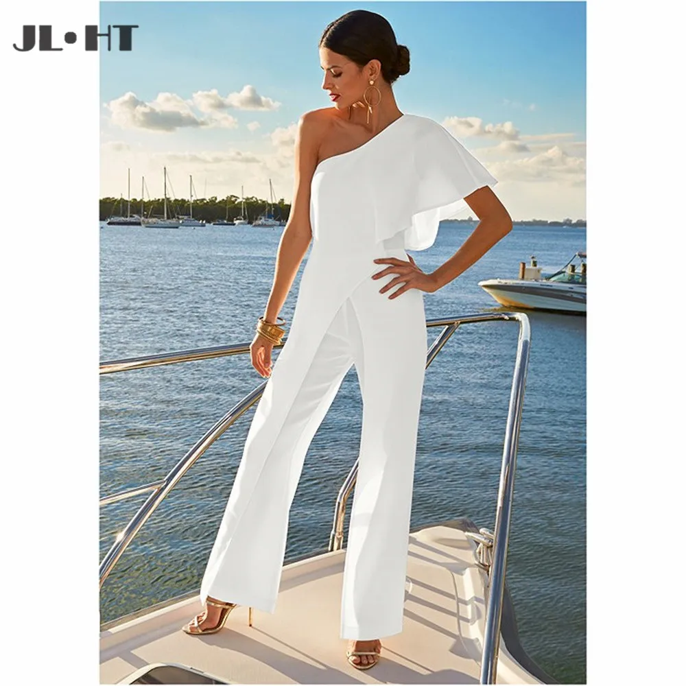 Белый шифоновый комбинезон на одно плечо, вечернее длинное платье для выпускного вечера, с рукавом до локтя
