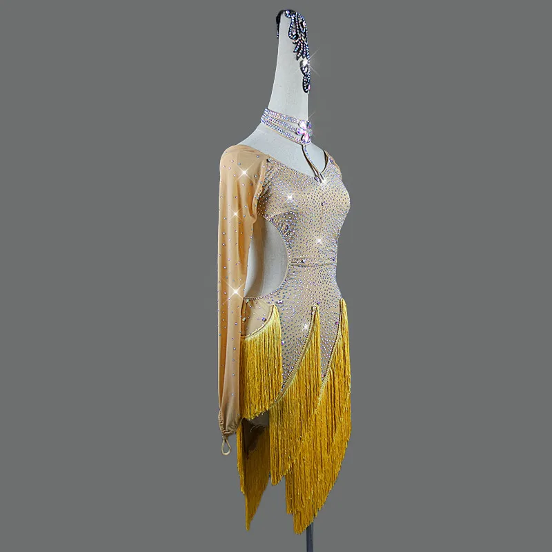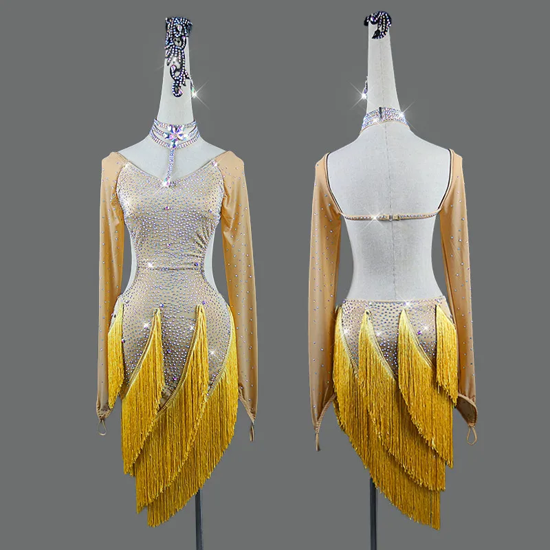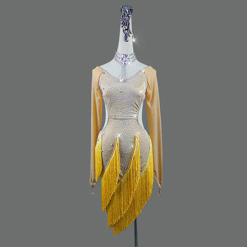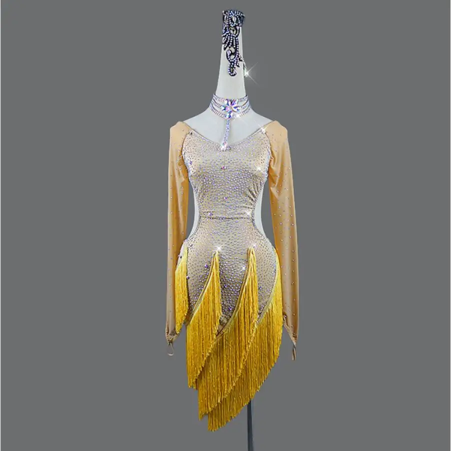 Блестящее платье стразы для латиноамериканских танцев женские костюмы для выступлений для леди сексуальное платье с бахромой юбка