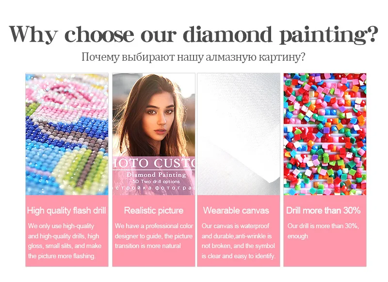 У нас есть 7 лет опыта в алмазной живописи. Обратите больше внимания на каждый опыт покупок клиентов. Если вы обнаружите проблему качества, пожалуйста, свяжитесь с нами вовремя. Определенно даст вам удовлетворительный результат.