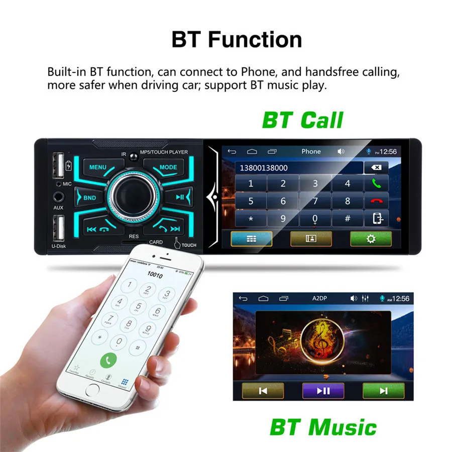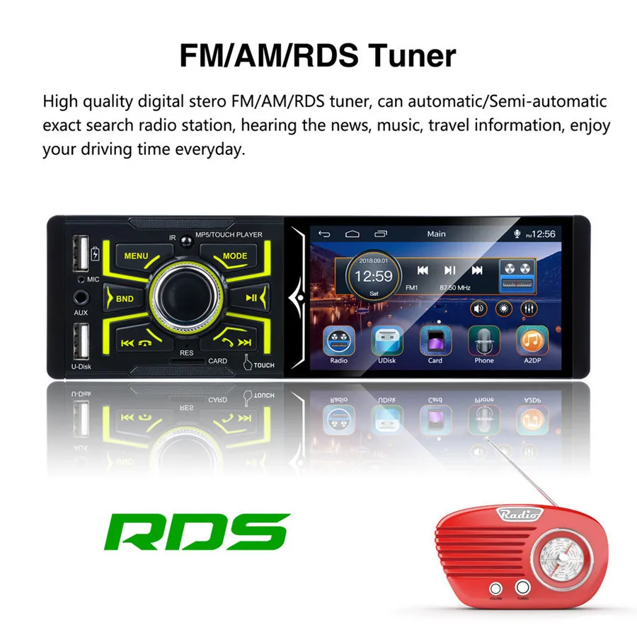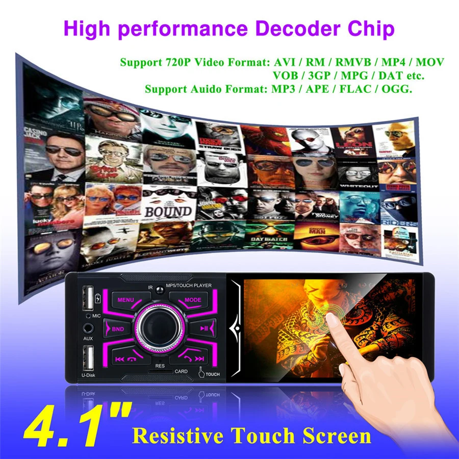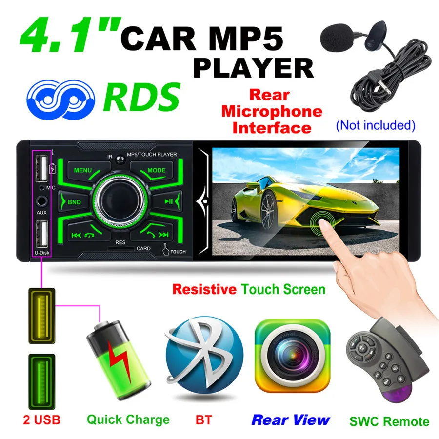 Автомобильный плеер с сенсорным экраном 4,1 дюйма, RDS MP5радиоBluetooth, AM, FM-радио, поддержка микрофон с сабвуфером