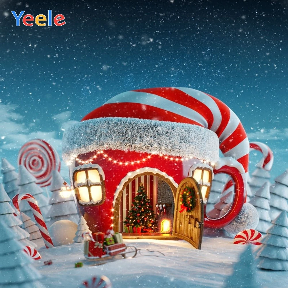 Рождественский фон Yeele, Зимний снег, сказка, конфеты, торт, дом, камин, страна чудес, принцесса, детский фон для фотостудии