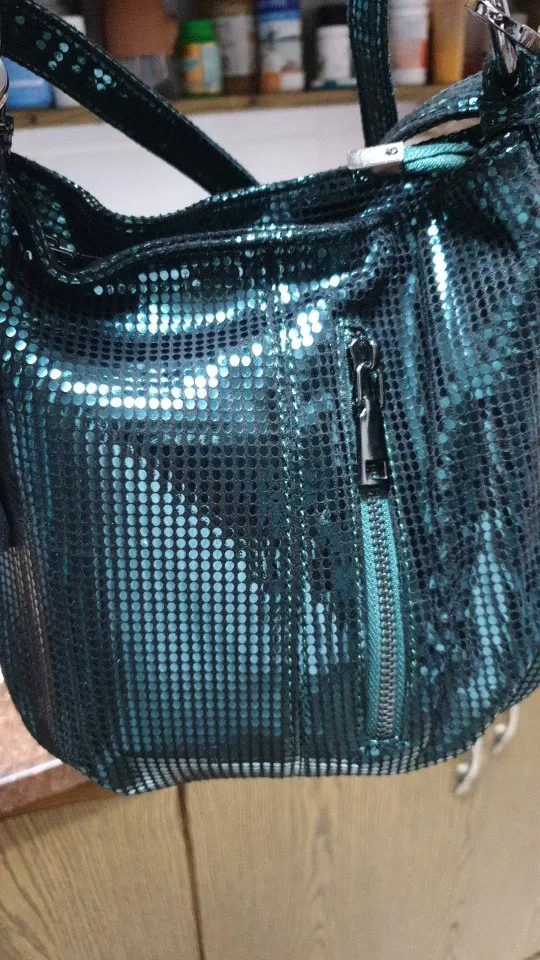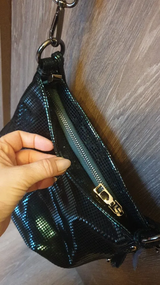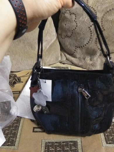 Действительно сумка очень маленькая, надо было искать мне размер больше, в магазине такую не купила бы, но она очень красивая, классно блестит и переливается, хорошо, что заказала в темно-синем цвете.
