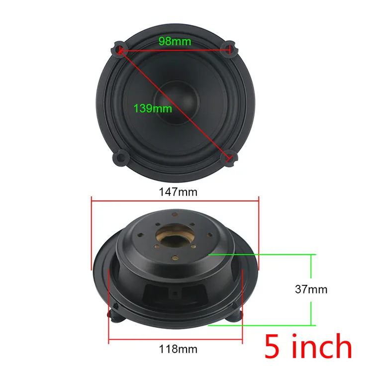Обратите внимание, что это не динамик. 4 дюйма: диаметр рожка: 116 мм, расстояние отверстия под винт по диагонали: 108 мм, размер отверстия: 95 мм, Глубина зенковки: 2,5 мм, высота: 33 мм. Вес: 110 г/пара 5 дюймов: рожок Внешний диаметр: 147 мм, диагональное отверстие для винта расстояние: 139 мм, отверстие для открытия: 118 мм, Глубина зенковки: 3,8 мм, высота: 37 мм. Вес: 180 г/пара Фальшивый динамик, усилитель, используемый в динамике, и басовый радиатор также называют пассивным динамиком. Используется для замены перевернутой трубки. Изготовленный с радиатором сабвуфер имеет следующие преимущества по сравнению с традиционным перевернутым сабвуфером. Глубина погружения эквивалентна глубине погружения назад, но ощущение скорости очевидно быстрее, чем ощущение скорости назад. Обладает преимуществом определенного закрытого ящика, и в то же время полностью устраняет недостаток перевернутой конструкции-то есть перевернутый шум ветра насадки. Так что я люблю глубоко нырять, но друзья, которые предъявляют более высокие требования к скорости басов, используют радиационный бассейн, чтобы сделать сабвуфер лучшим выбором. Посылка 2шт пассивный радиатор (не динамик)