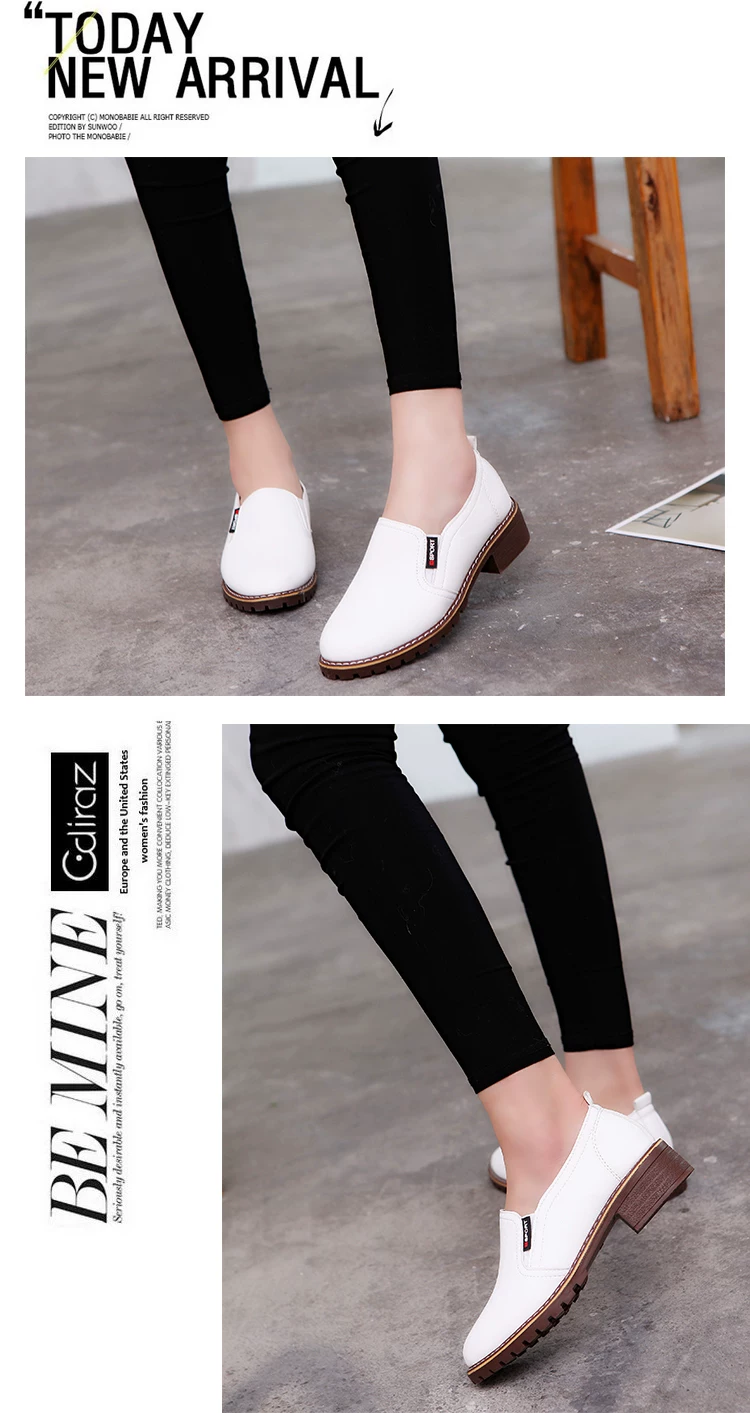 Новинка весны 2019, женская обувь на толстом каблуке, корейские повседневные женские тонкие туфли на низком каблуке 3 см, белые студенческие туфли в британском стиле