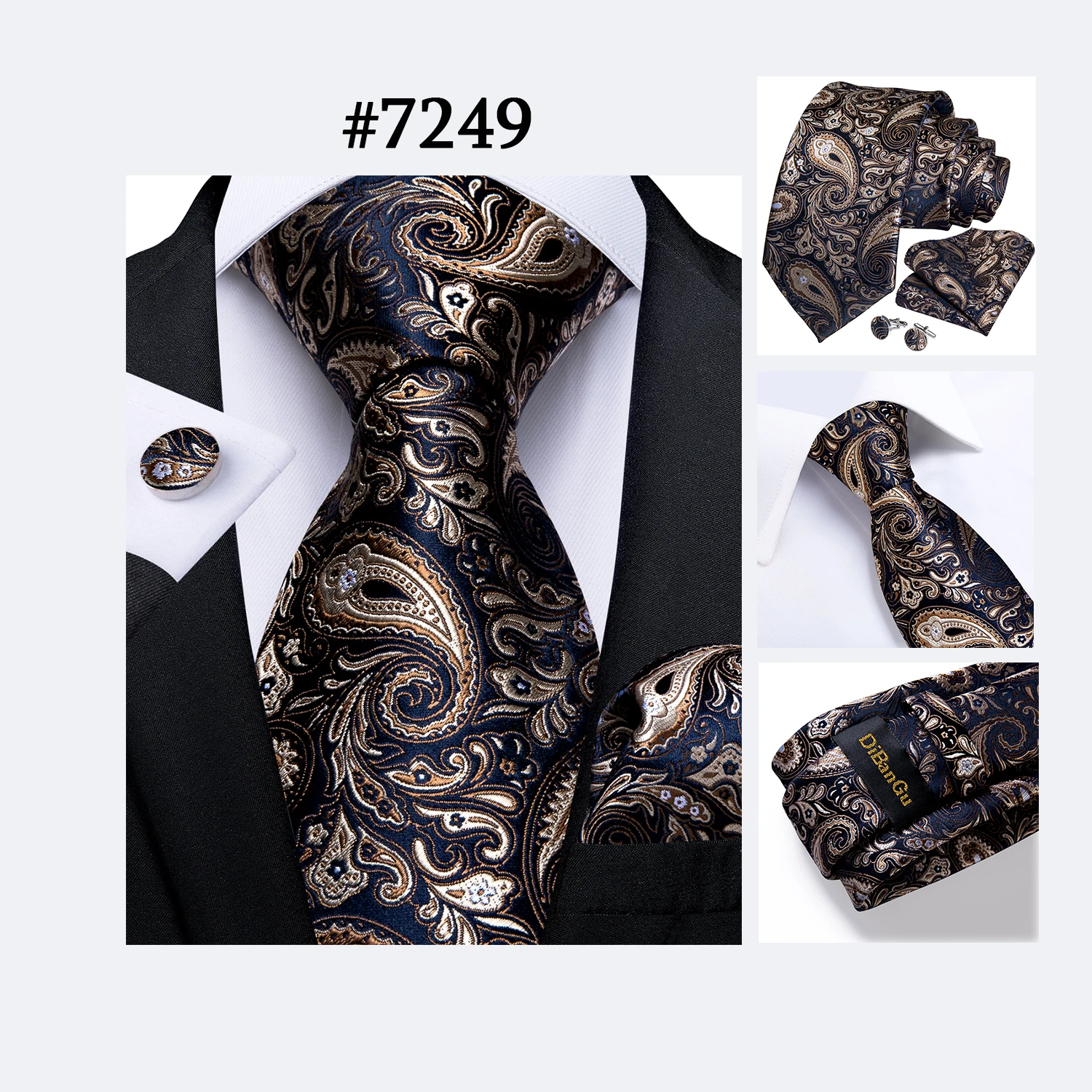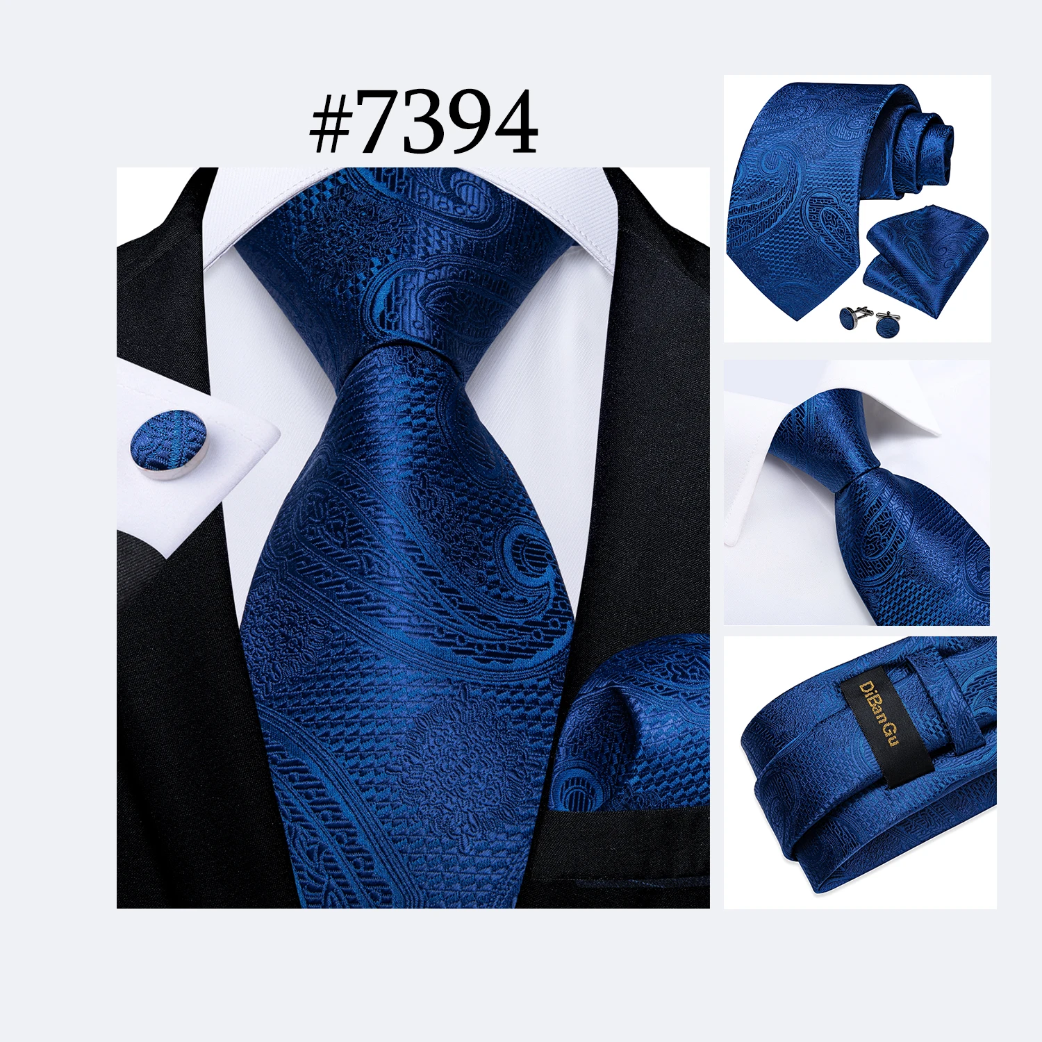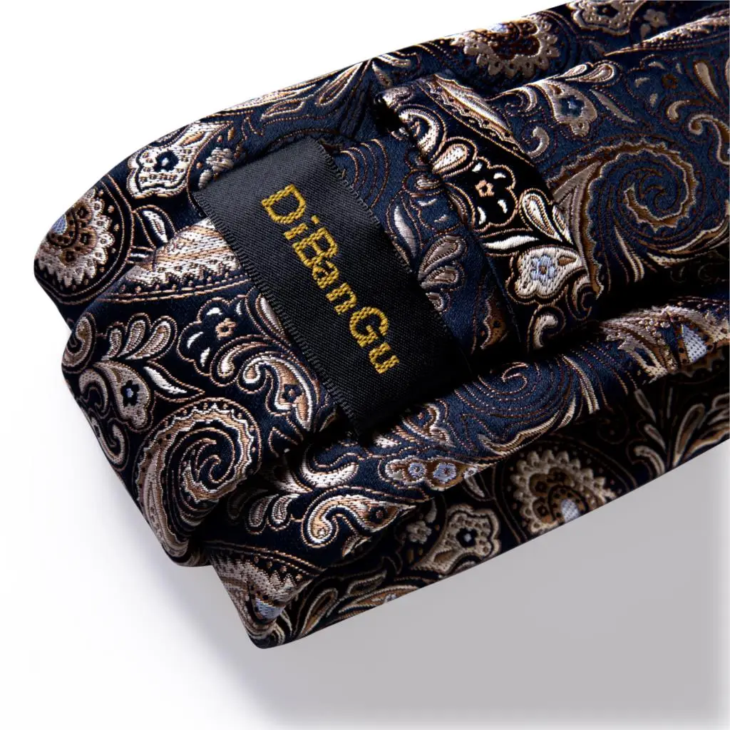 Мужской галстук с золотыми и синими Пейсли, Свадебный галстук для мужчин, Hanky, запонки, Шелковый мужской галстук, вечерние, деловые, модные, DiBanGu, дизайнерские, MJ-7249