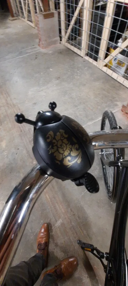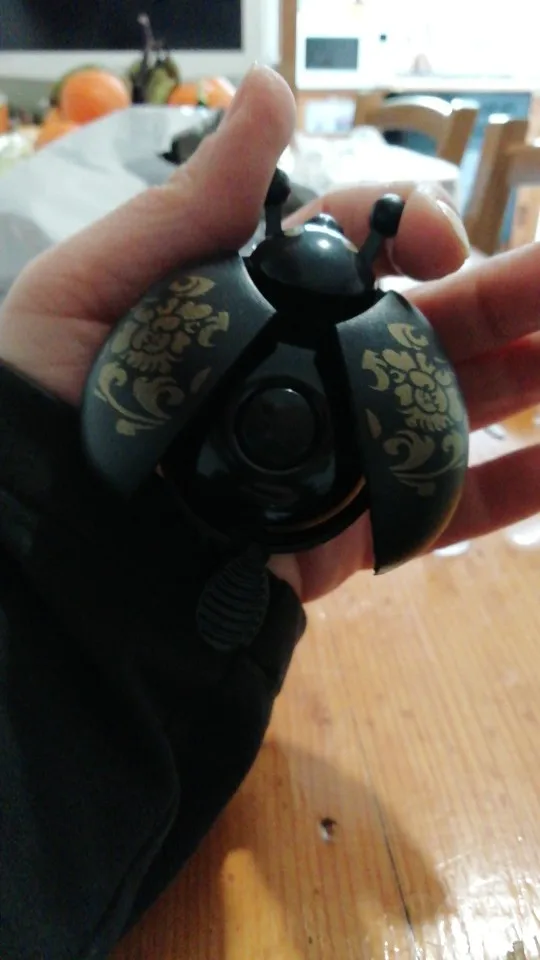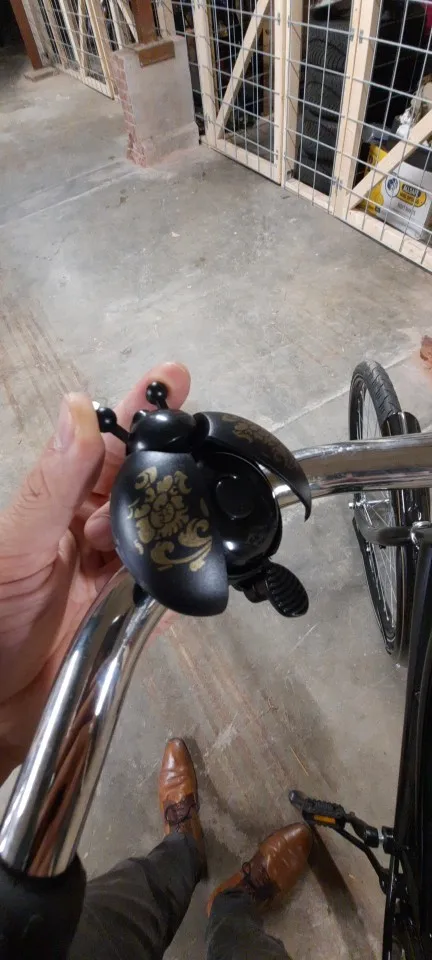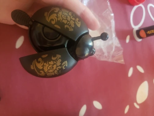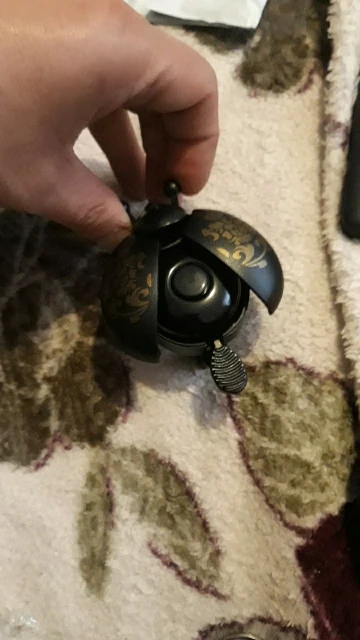 Классный звонок. Звенит хорошо, громко. При нажатии на усы жука - раздвигаются крылья. Ставил на велосипед и самокат, не снимая грипсов и рычагов. Хомут не лопнул. Но диаметр хомута маленький. На толстом руле может винт не вкрутиться. Брал зелёный и красный, оба ребёнку. В итоге - жена один отобрала) Буду заказывать ещё.