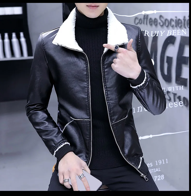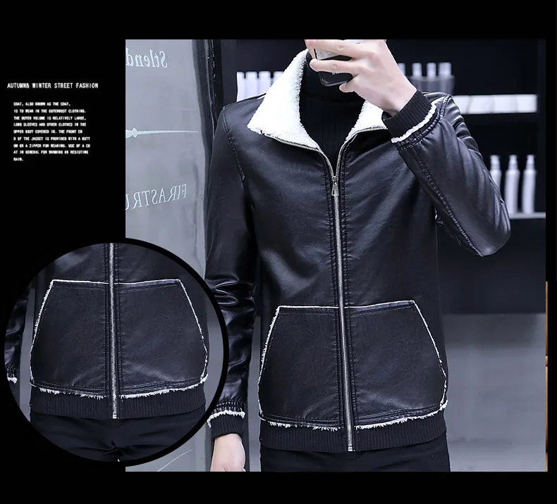 Новинка, зимние кожаные куртки, Мужская модная брендовая Вельветовая Толстая Теплая Повседневная мужская мотоциклетная куртка из искусственной кожи, большая модель