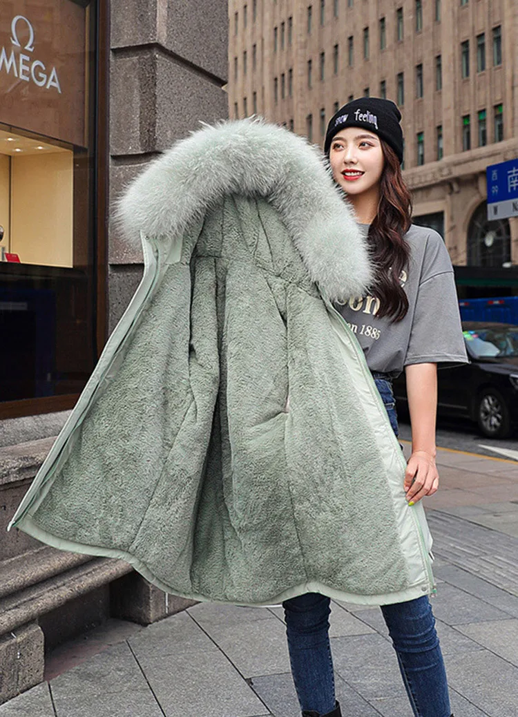 Женский пуховик, новинка 2022, плотное бархатное пальто, женская модная теплая меховая однотонная куртка на молнии, женские парки, Женская куртка