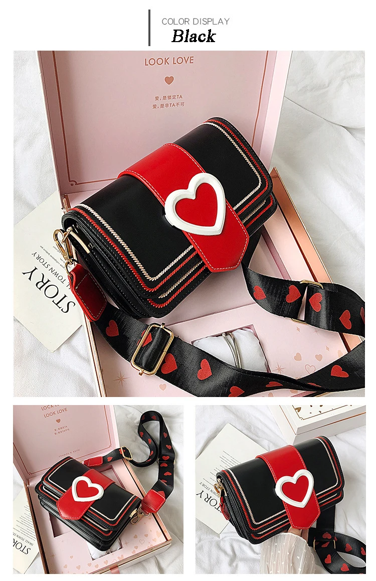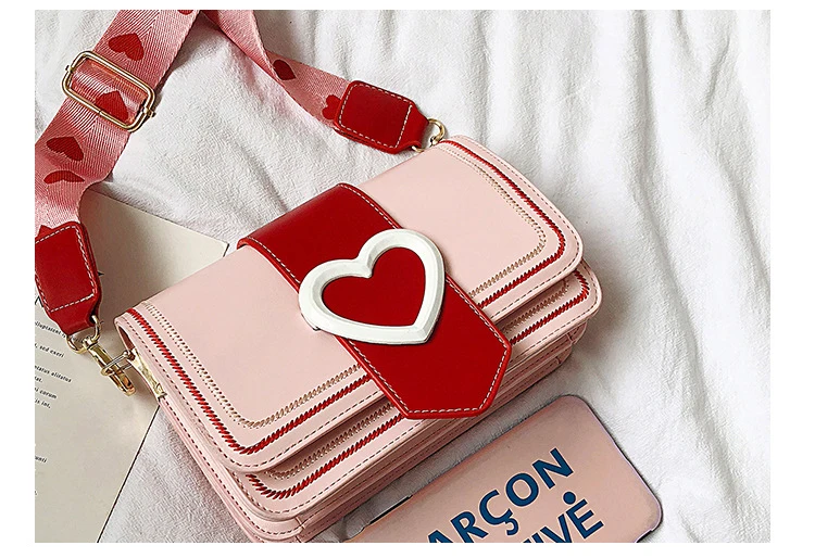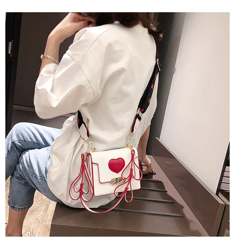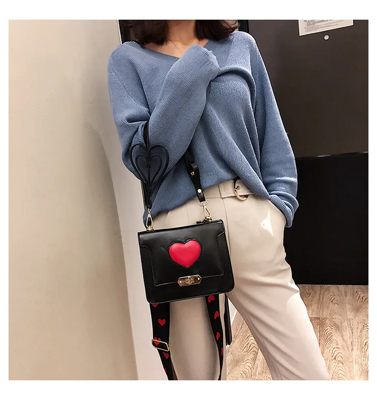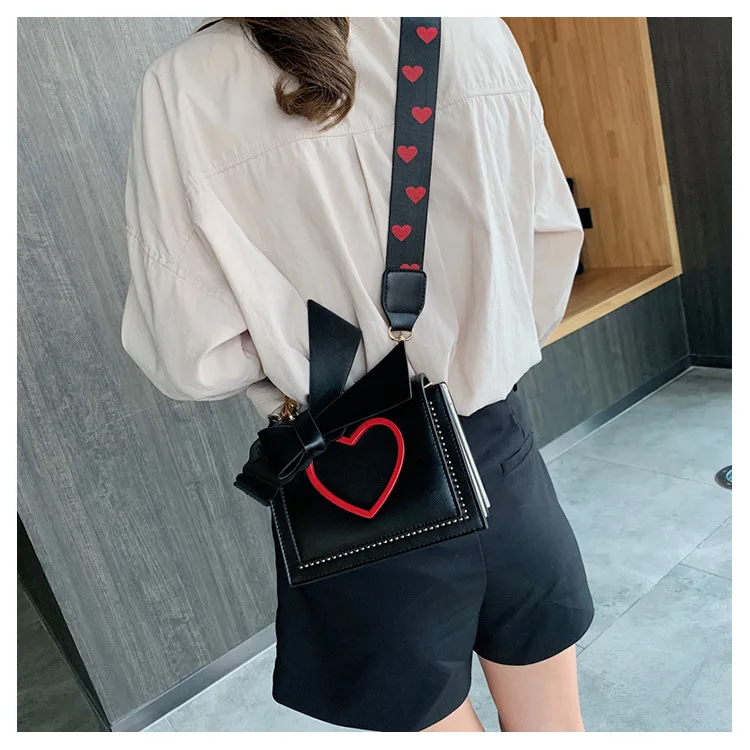 Женская сумка через плечо, из искусственной кожи, с ремешком в форме сердца