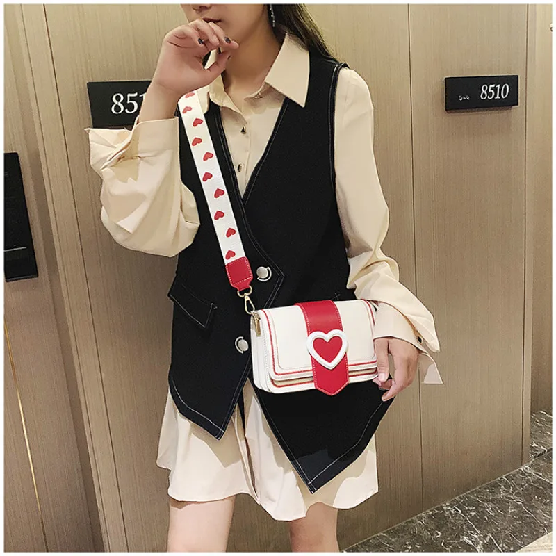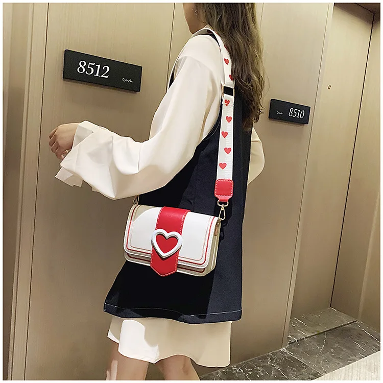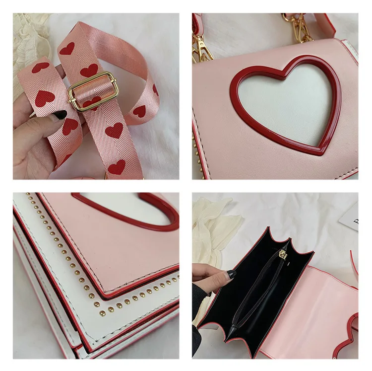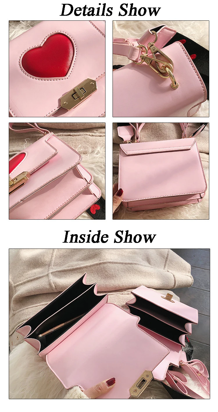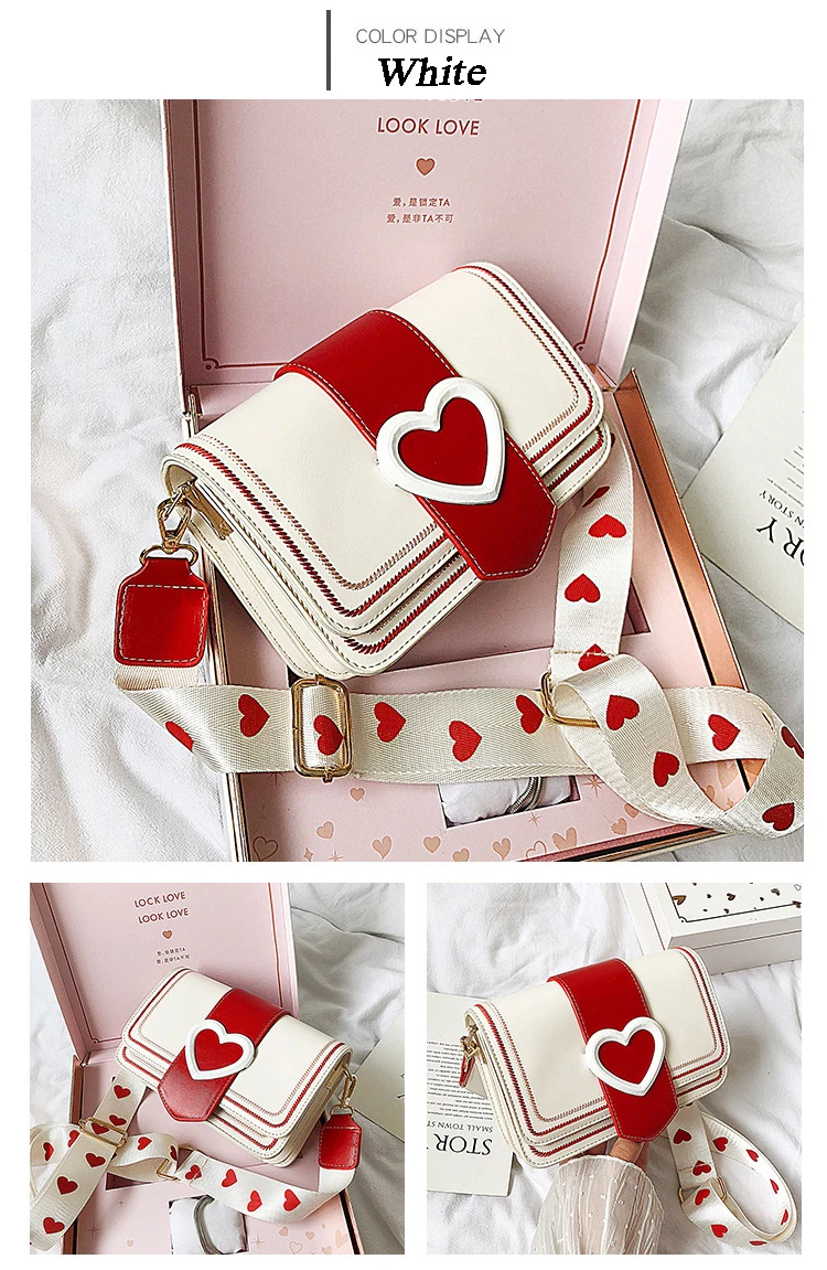 Женская сумка через плечо, из искусственной кожи, с ремешком в форме сердца