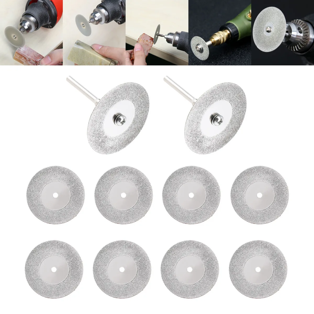 Алмазный режущий диск 10 шт.компл. 35 мм, лезвие для циркулярной пилы с фиксированным стержнем 2 шт. 3 мм для стекла, камня, металла, дерева, режущий диск