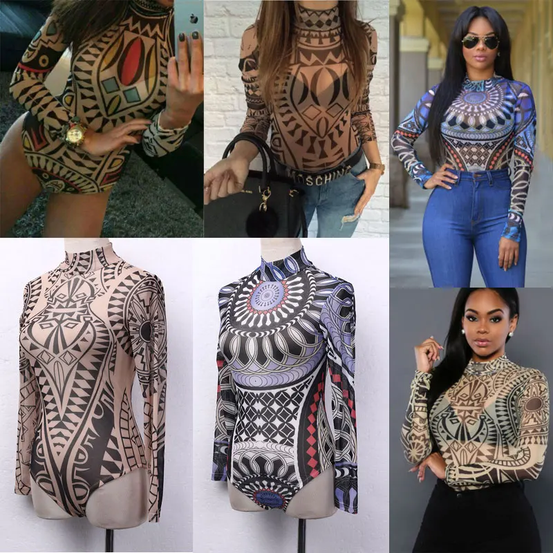 Женский сетчатый комбинезон, облегающее боди, трико, блузка с длинным рукавом, рубашки