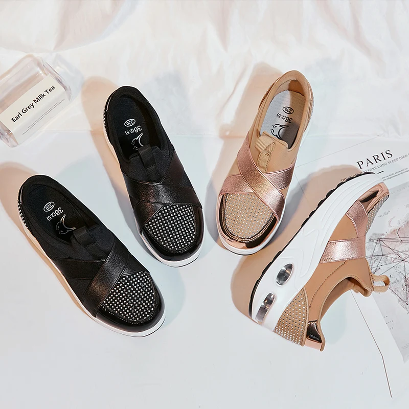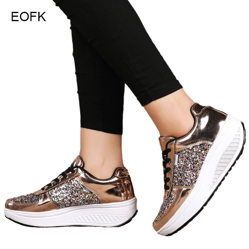 Женские кроссовки без шнуровки EOFK, на платформе, мягкие Повседневные Удобные Мокасины золотого цвета, лоферы на плоской подошве, осень