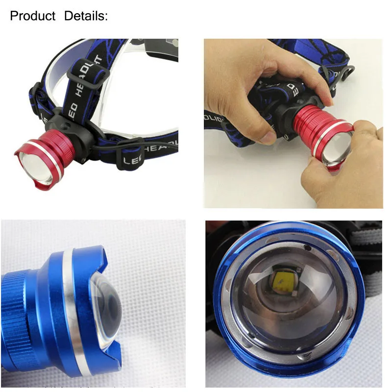 Расположение переключателя: сторона ремешка 100% Фирменная Новинка Светодиодный: XML-T6 светодиодный потолочный светильник Люмены: 1000 люменов, светильник на расстоянии около 100-200 м Водонепроницаемый дизайн Алюминий корпус из алюминиевого сплава Алюминий рефлектор из алюминиевого сплава 3 режима переключения: яркий светильник/тусклый светильник/мигающий режим Требуемая модель аккумулятора: 2 аккумулятора 18650 (Посылка на выбор) Светодиодный налобный фонарь с регулируемым фокусом и зумом Цвет:Красный, синий, черный цвет головы. (Если вы хотите выбрать цвет, пожалуйста, оставьте нам сообщение, или мы отправим вам случайный цвет. Спасибо за понимание.Спецификация домашнего зарядного устройства на выбор: