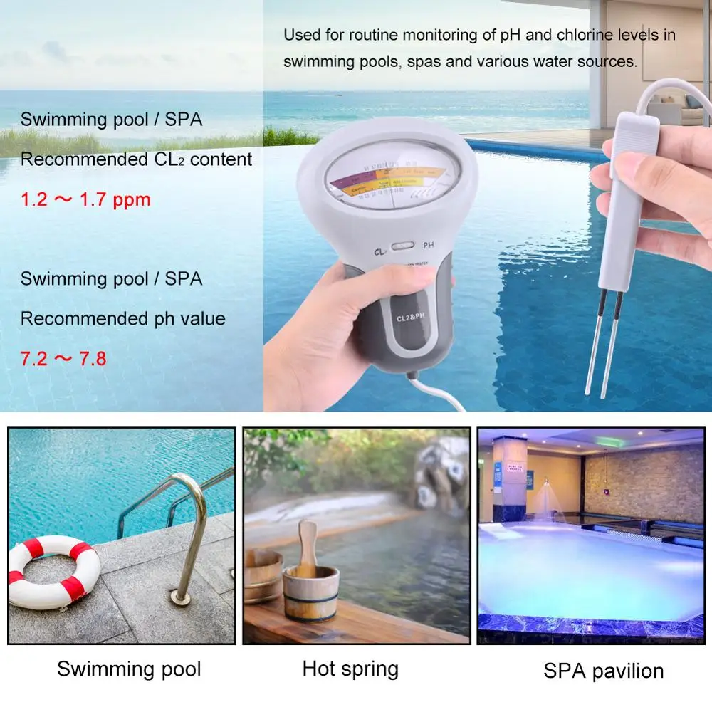 A : 1. Рекомендуемый уровень хлора для плавательных бассейнов и спа-салон 1,2 для 1.7ppm 2. Рекомендуемый уровень pH для плавательных бассейнов и спа-салон 7,2 до 7,8