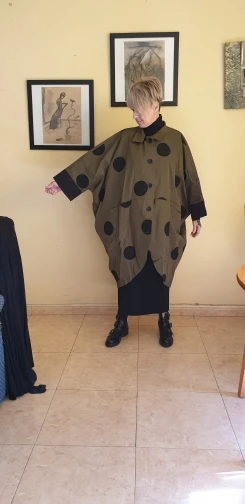 Давно меня так не радовали покупки! Плащ совершенно обалденный, оверсайз, но не полнит. На картинке смотрится менее интересно, чем в реале. Материал плотный, пошив качественный, ни торчащих ниток, ни запаха. На рост 164 - сзади ниже колена, рукава 3/4. Продавцу - респект, магазину - процветания!