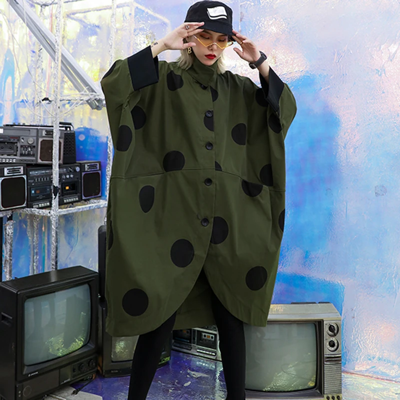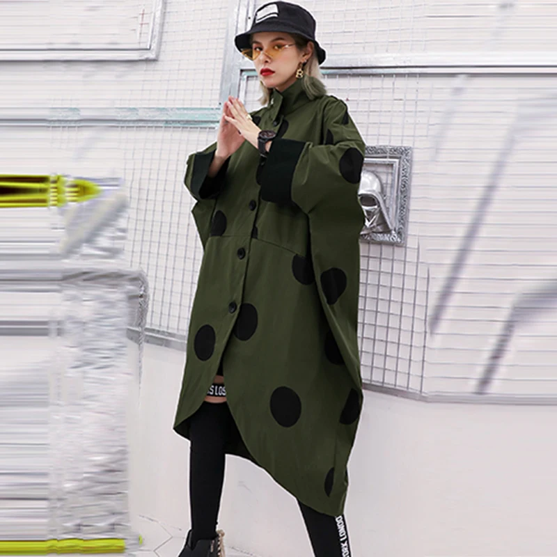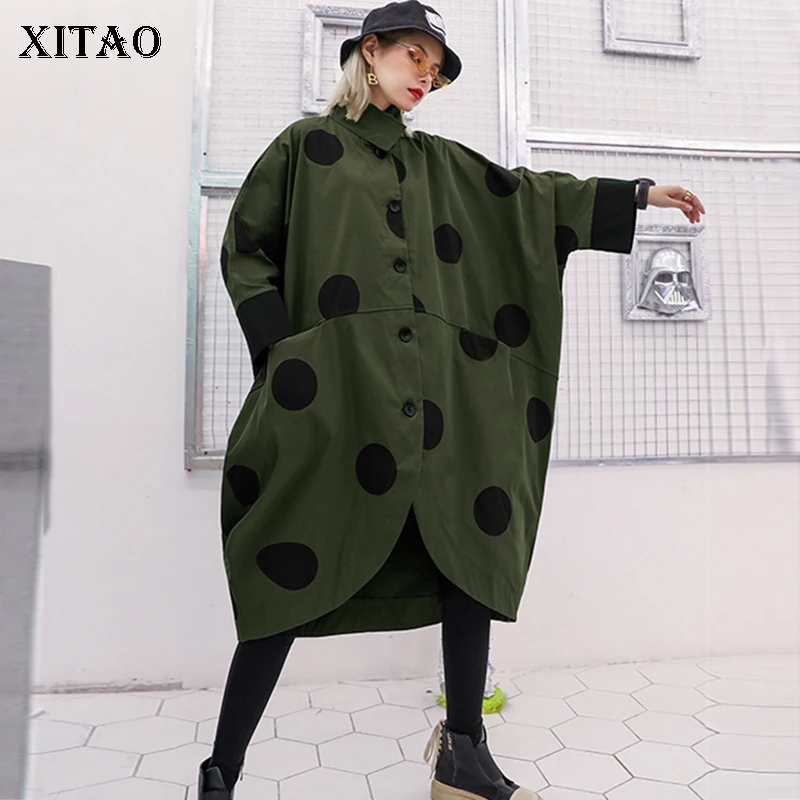Женский Тренч в горошек XITAO, с одним нагрудным карманом, с отложным воротником, нестандартная модель GCC1781 на осень, размера плюс