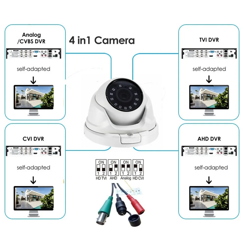 Стандартный режим камеры-камера HD-TVI (для HD-TVI DVR), поэтому, если ваша система AHD/ CVI/CVBS, сначала Настройте камеру на тот же режим с вашей Системой через контроллер переключателя на основе инструкции картинки на контроллере переключателя, В противном случае картинки не будут отображаться или качество изображения может быть не хорошим.