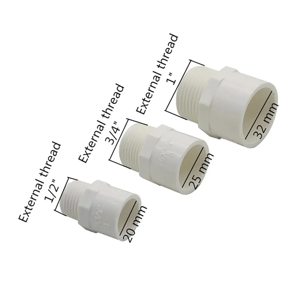 Прямой переходник BSP с наружной резьбой, 5 шт., 20 мм, 25 мм, 32 мм, соединители из ПВХ, 12 дюйма, 34 дюйма, 1 дюйм, внешняя резьба, фитинги для ремонта водопроводных труб