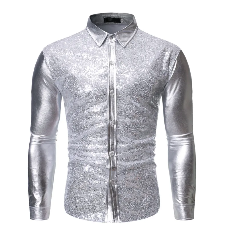 Мужская приталенная рубашка, сияющая рубашка с золотыми блестками, ...