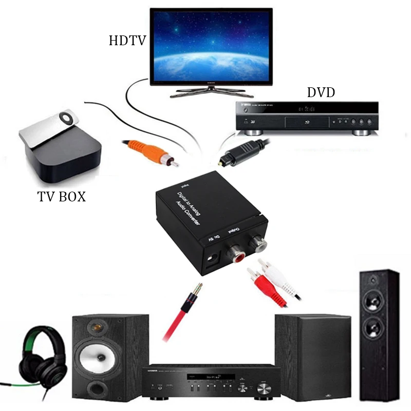 Цифровой оптический в аналоговый аудио конвертер адаптер RCA цифровой в аналоговый аудио конвертер адаптер DAC Jack 2 * усилитель RCA декодер