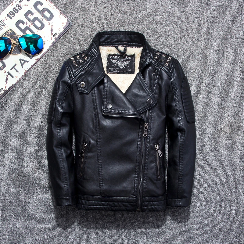 Куртка детская из искусственной кожи, для мальчиков, зимняя, однотонная, 2019