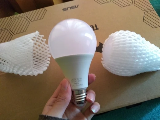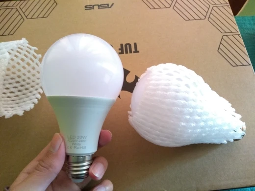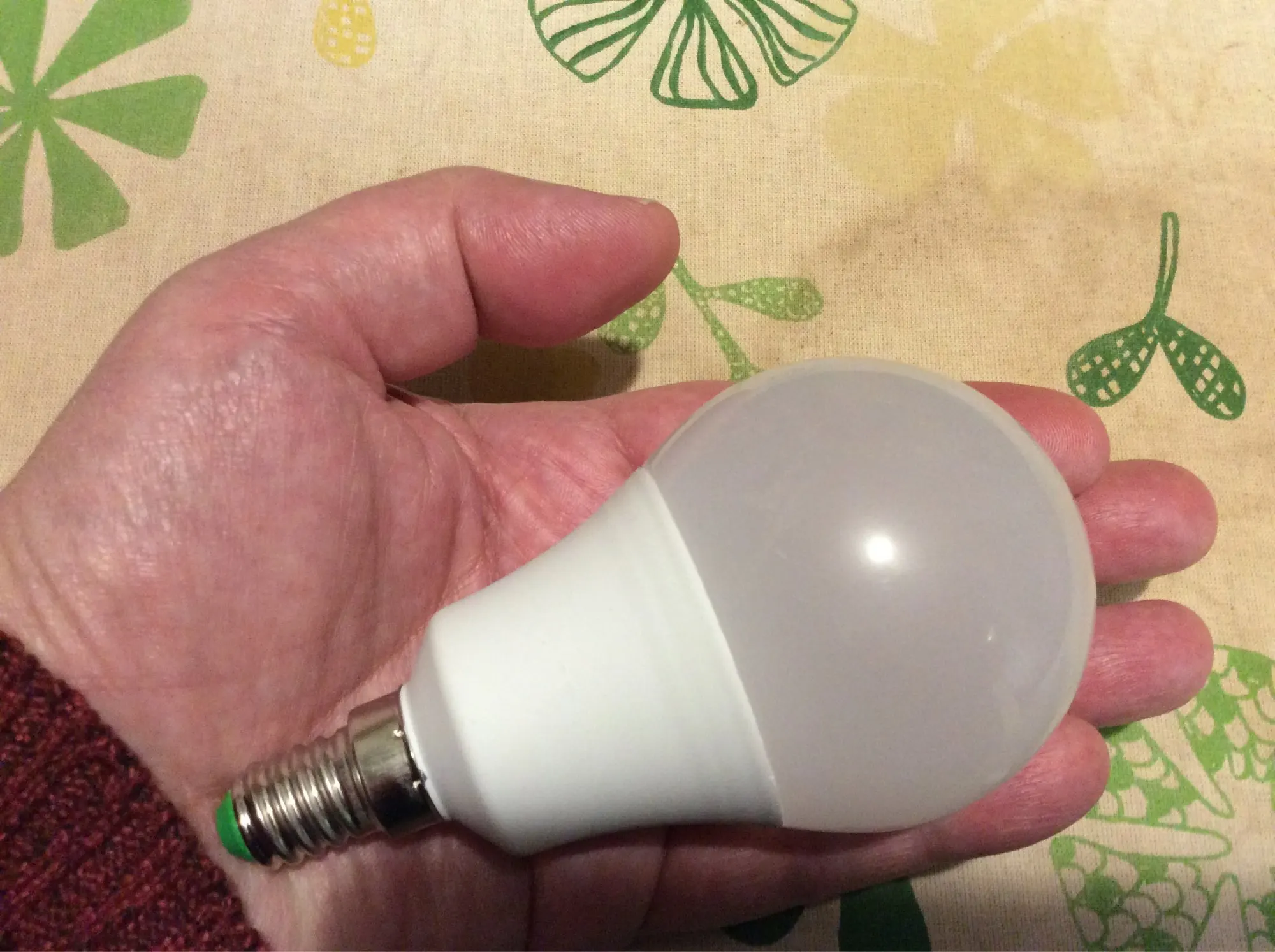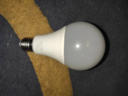 Он огромный, очень легкий, к моему удивлению, его потребление энергии начинается с 20 Вт и скоро падает на 15 Вт. База сразу становится горячей. Как ни удивительно, она не выглядит ярче, чем Светодиодная лампа 6 Вт...