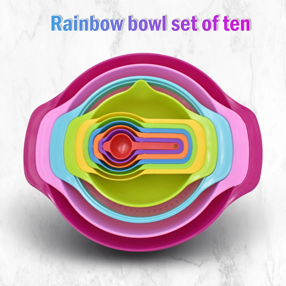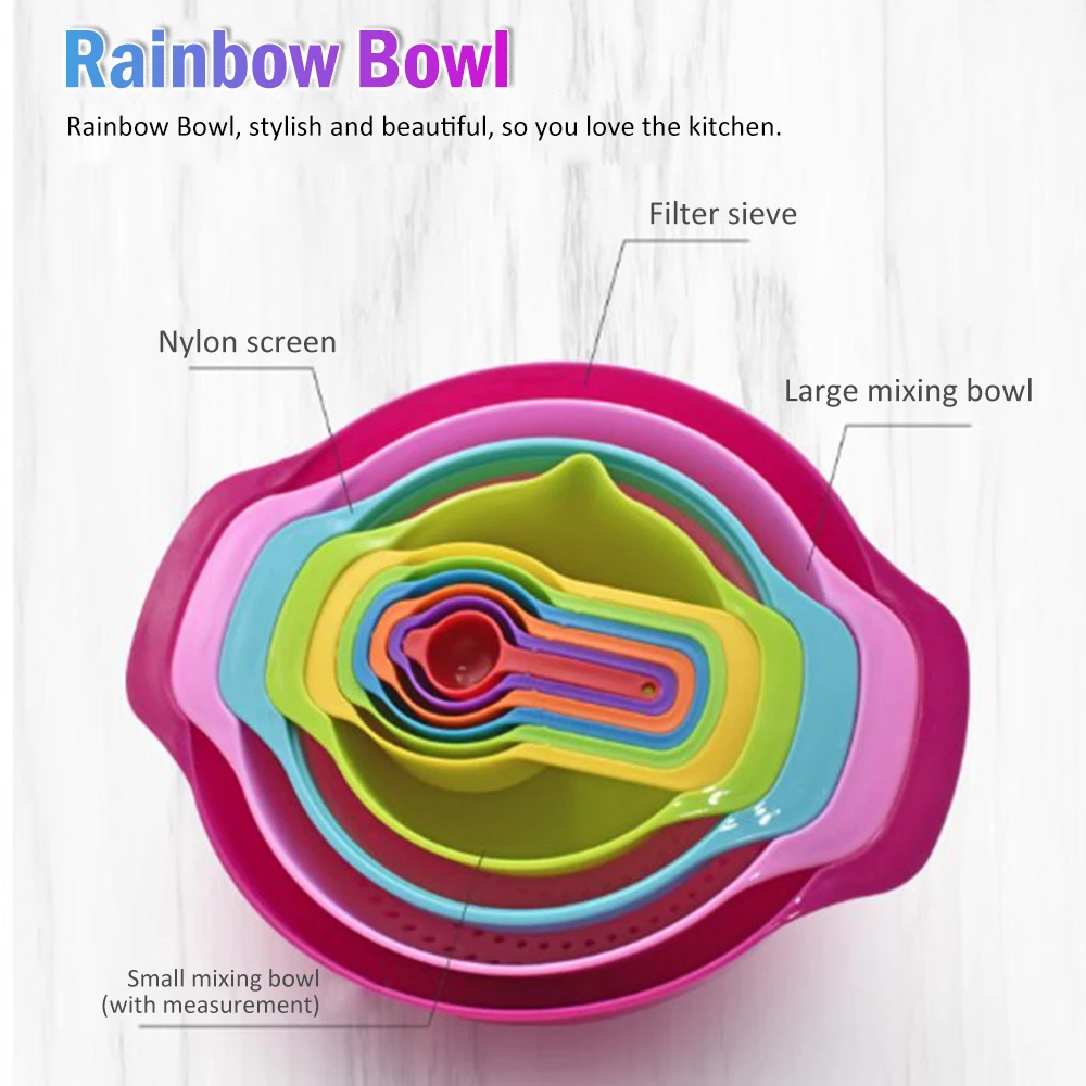 Спецификация продукта:Название продукта: креативная Радужная Салатница, 10 шт. мерная чашка, мерная ложка, сковорода, кухонные инструменты для выпечкиМатериал: ПП + силиконРазмер:Раковина для овощей: 31,8*13,3 см 240 гСливная раковина: 28,3*12,4 см 157 гСито для муки: 24,8*8,2 см 54,5 гНосик маленький горшок: 21,2*7,8 см 74,6 гМерные ложки:250 мл --- подача заявки на 16,5*9 см 27,5 г125 мл --- подача заявки на 14,3*7,7 см 18,3 г85 мл ---- 13,2*6,6 см 14,5 г60 мл --- 12*5,4 см 12 г15 мл ---- 10,8*4,2 см 8 г7,5 мл --- подача заявки на 9,8*3,2 см 4,7 гОсобенности:1. Все вокруг смешивания и Измерительный набор-чтобы подготовить идеальное сочетание ингредиентов, все, что вам нужно, это прямо здесь. Маленькая миска с горлышком для заливки позволяет легко наливать тесто и соусы без каких-либо проблем, а большая миска с нескользящей резиновой подошвой удерживает устойчивость во время смешивания. Также включены мерные чашки и ложки;2. Вложение для удобного хранения-все в этом наборе может храниться внутри большой миски, когда не используется. Укладка каждой чаши, а также измерительных стаканчиков и ложек вместе экономит драгоценное пространство в вашем домашнем кухонном ящике, RV, общежитии или квартире;3. Радужные цветные миски-этот Штабелируемый набор поставляется в различных, ярких цветах, чтобы сделать каждый инструмент легко идентифицировать и создать счастливую атмосферу на кухне. Это забавное дополнение к вашему дому для приготовления пищи, приготовления салата в салатнике, смешивания теста или подачи попкорна в кино ночью;4. Измерение для влажных и сухих ингредиентов-мерные чашки, чайная ложка и столовая ложка, имеют маркированные метрические и американские измерения для сухой или жидкой пищи. Этот набор поставляется в комплекте с овощной раковиной и ситом для муки;5. Мыть в посудомоечной машине все в одном наборе-все миски можно чистить с помощью посудомоечной машины. Вы можете очистить их нейтральным моющим средством, чтобы сохранить их поверхность блестящей и практичной.Упаковочный лист