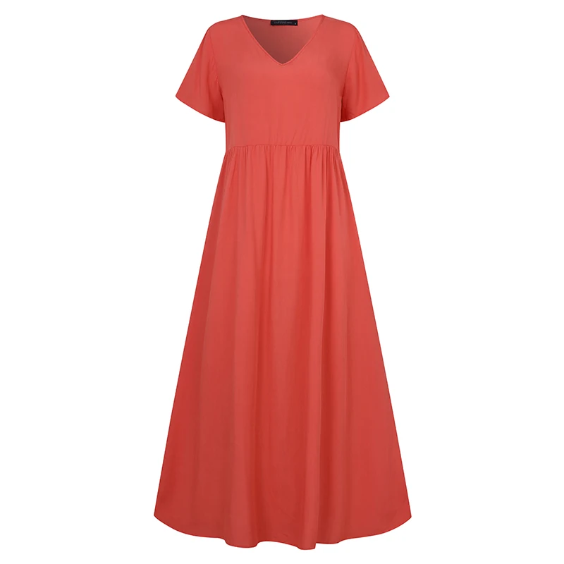 Летнее Длинное платье с коротким рукавом, винтажный женский сарафан с V-образным вырезом, кафтан, пляжные платья, Повседневные Вечерние платья
