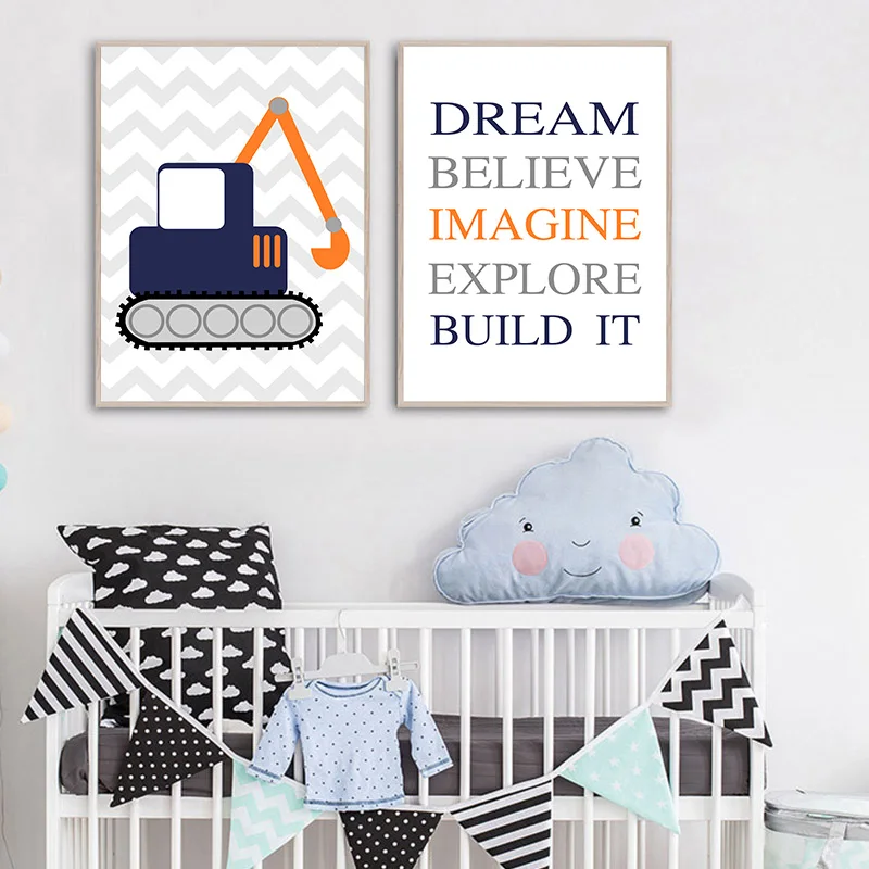 Постер с изображением грузовика, экскаватора, машины, детской комнаты, настенная живопись, Картина на холсте в скандинавском стиле для мальчиков, украшение для спальни, картина