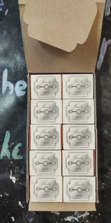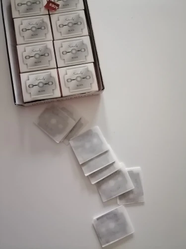 Добрый день!) заказ был получен вскоре после отправки продавцом, примерно через две недели. коробочка целая, лезвия ещё не были в деле.